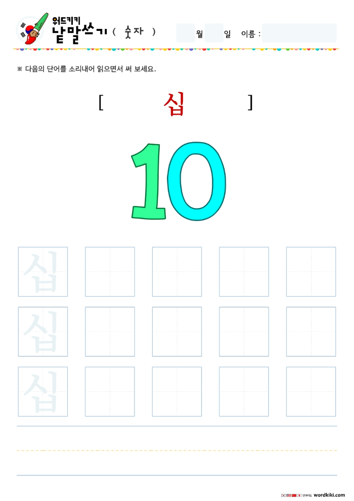 | [한글단어쓰기 10장] 04-1 한국어 숫자 단어쓰기 (큰글자) – 숫자 11 부터 20까지 (0) | 2024.05.22 |
