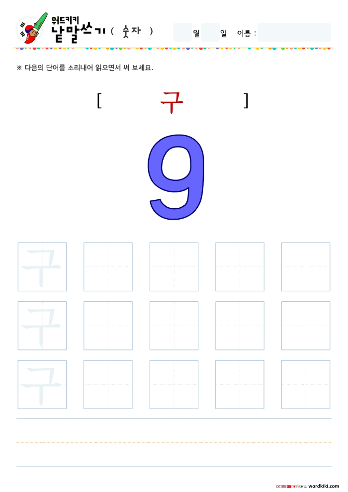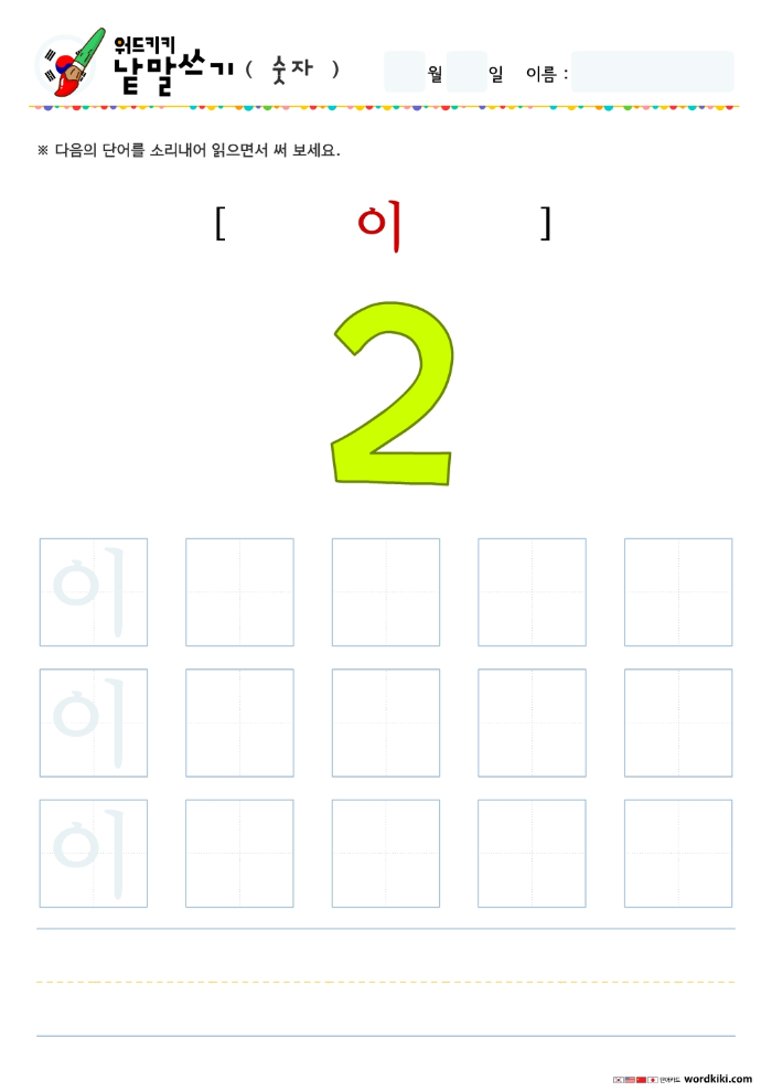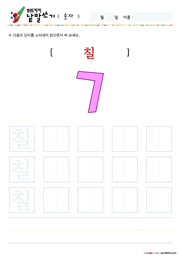 한글단어쓰기 숫자 단어 따라쓰기