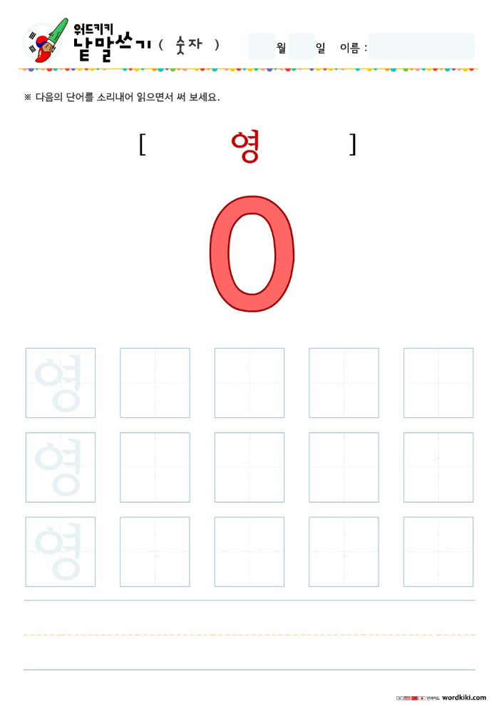 [한글단어쓰기 11장] 04-1 한국어 숫자 단어쓰기 (큰글자) – 숫자 0 부터 10까지