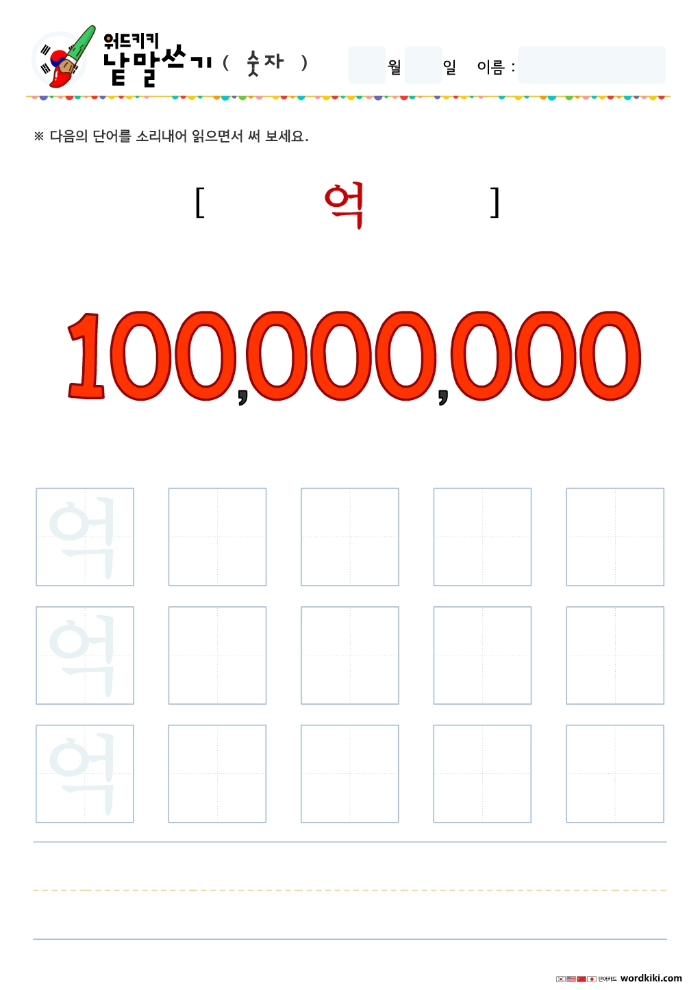 숫자 1000부터 100,000,000까지 숫자쓰기