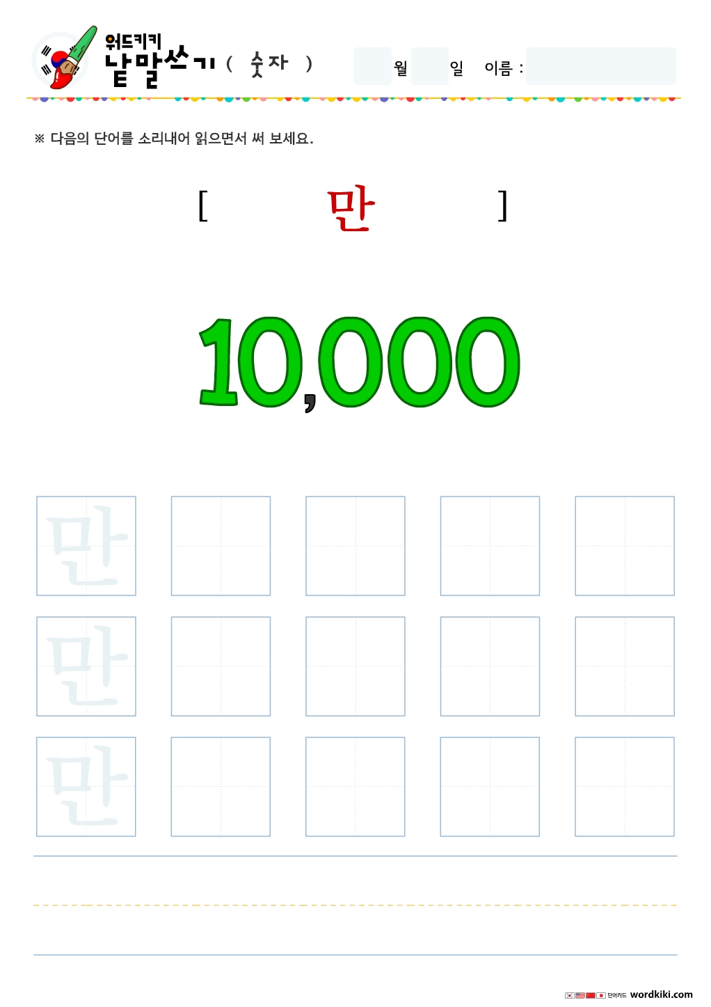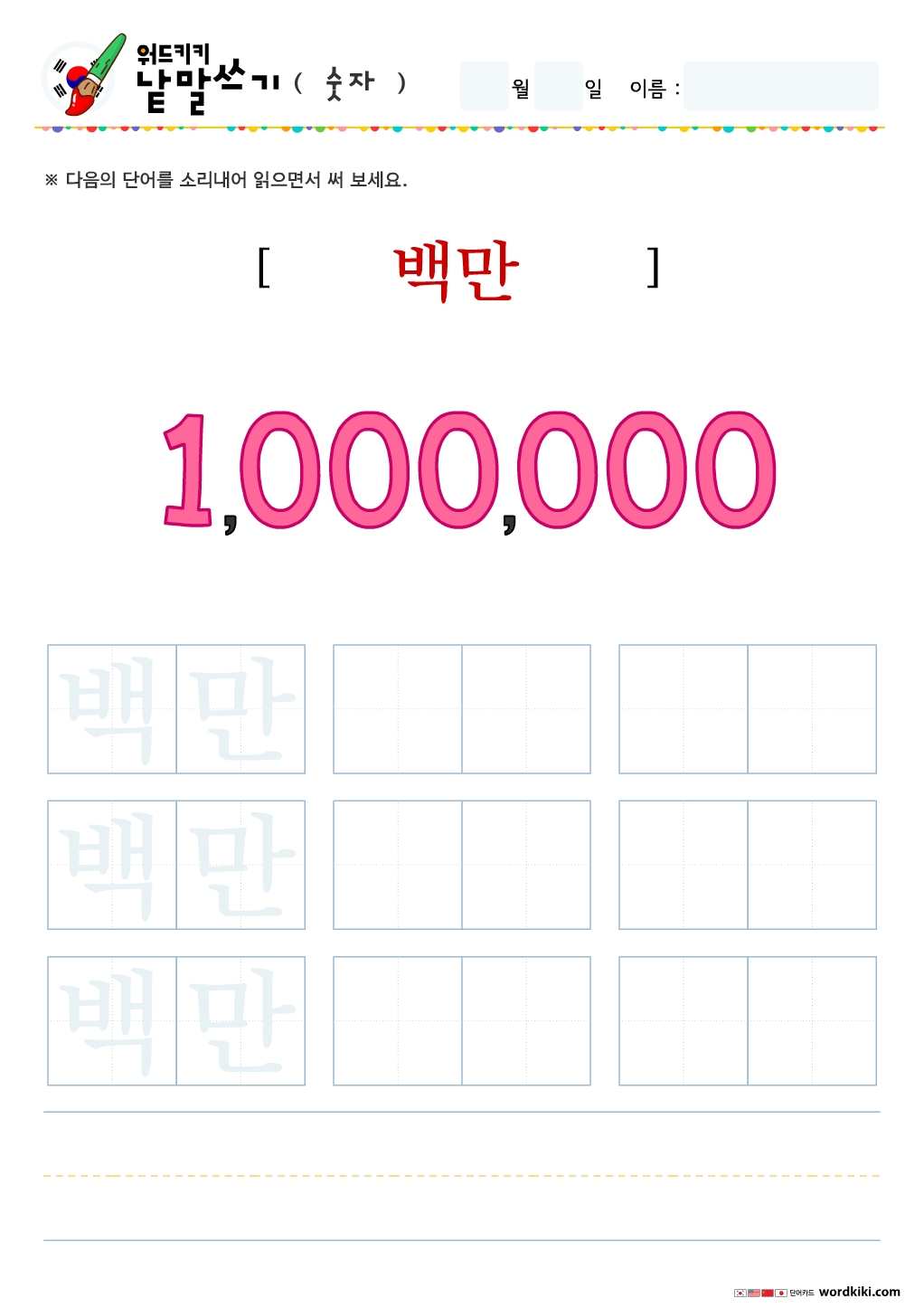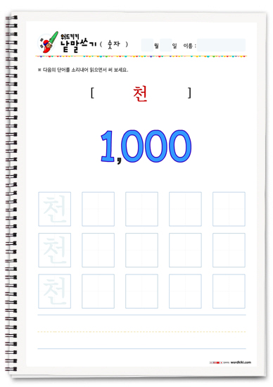 [한글단어쓰기 6장] 04-1 한국어 숫자 단어쓰기 (큰글자) – 숫자 1000부터 1억까지