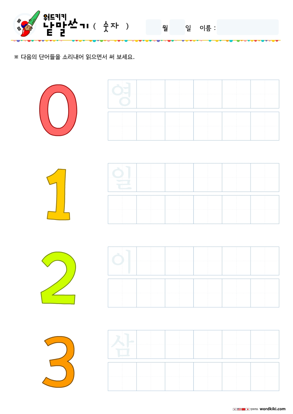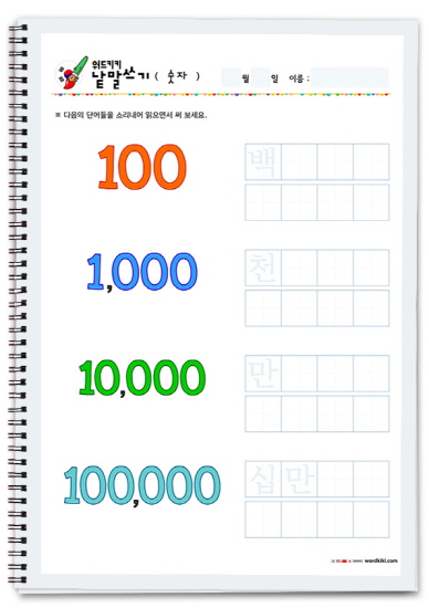 | [한글단어쓰기 6장] 04-1 한국어 숫자 단어쓰기 (큰글자) – 숫자 1000부터 1억까지 (0) | 2024.05.22 |