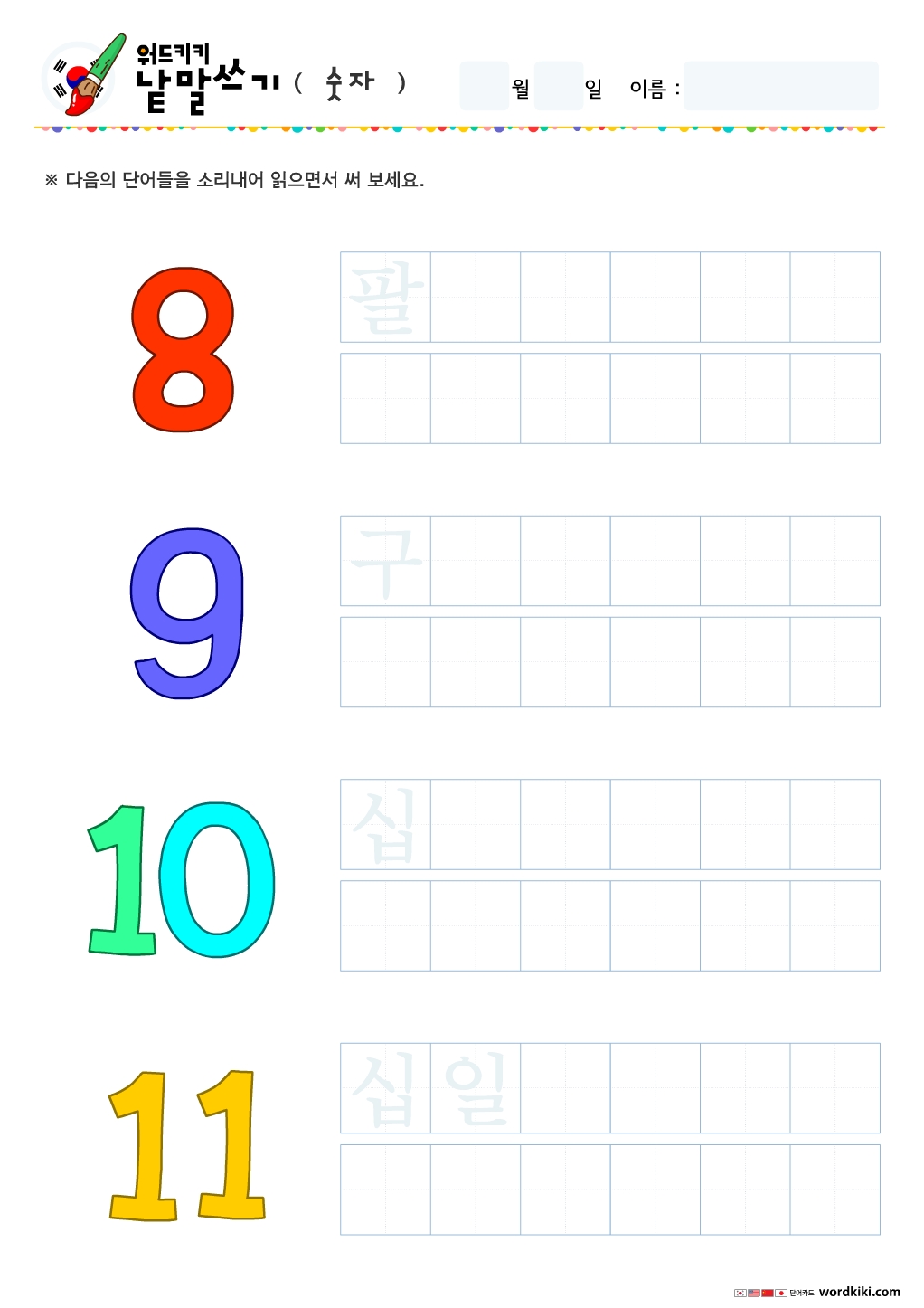 | [한글단어쓰기 10장] 04-1 한국어 숫자 단어쓰기 (큰글자) – 숫자 11 부터 20까지 (0) | 2024.05.22 |