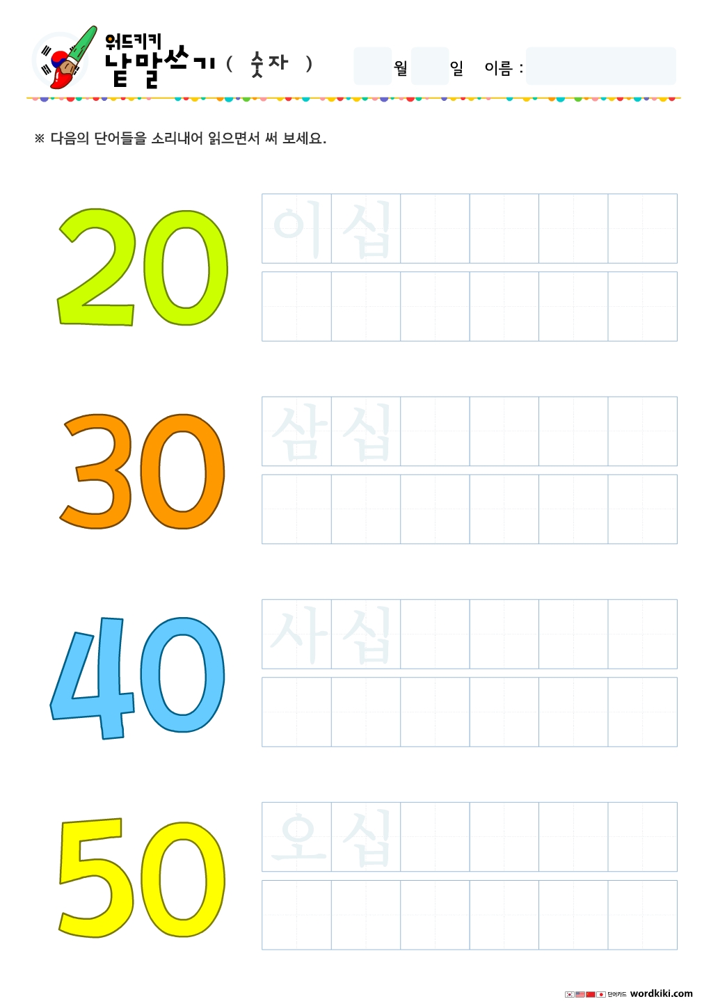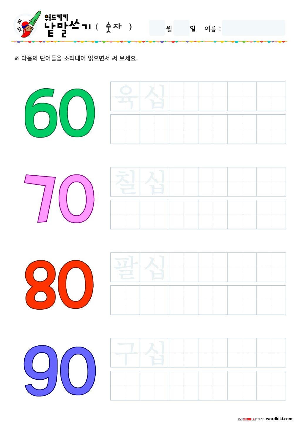 | [한글단어쓰기 10장] 04-1 한국어 숫자 단어쓰기 (큰글자) – 숫자 10 부터 100까지 (0) | 2024.05.22 |