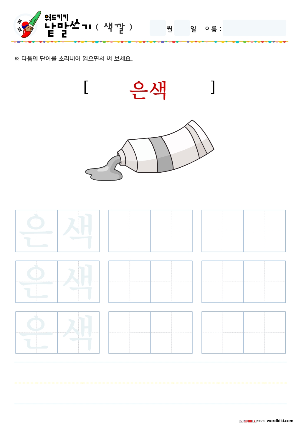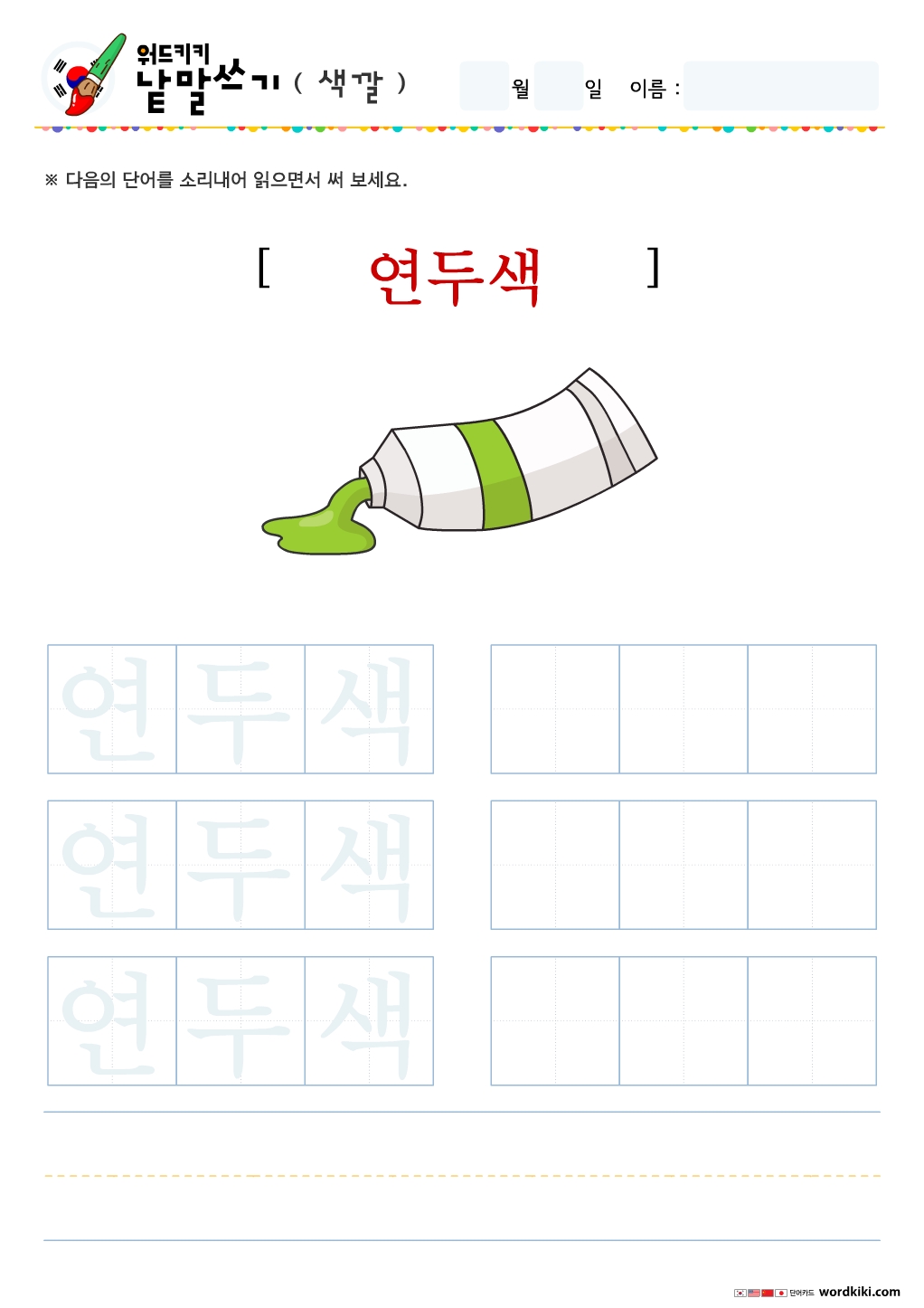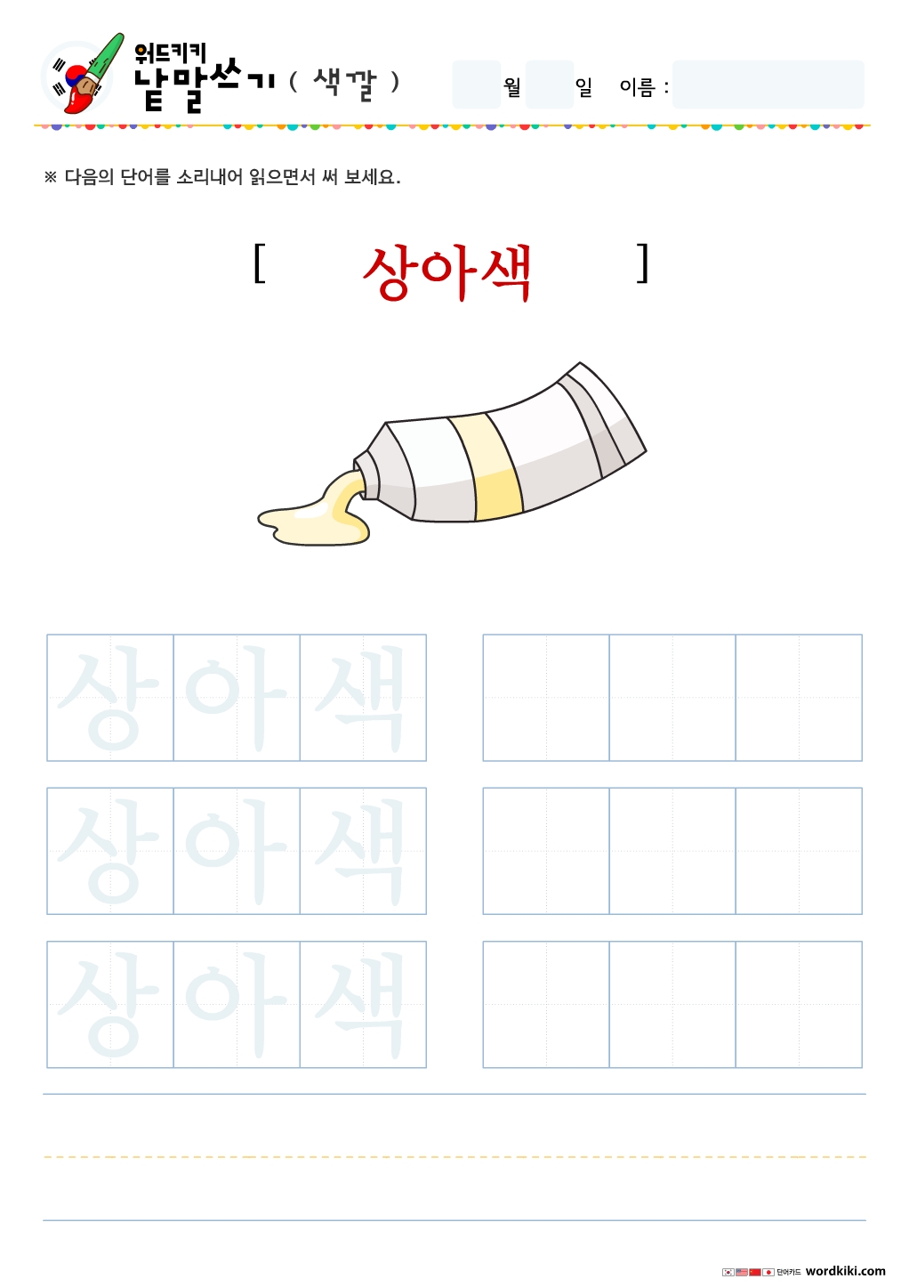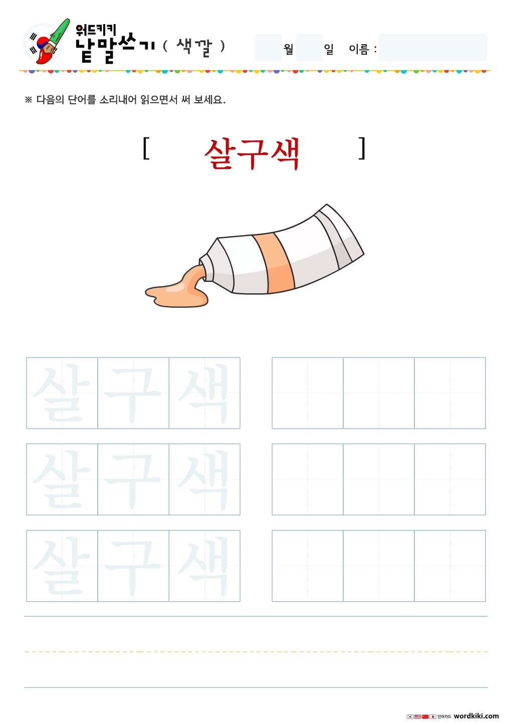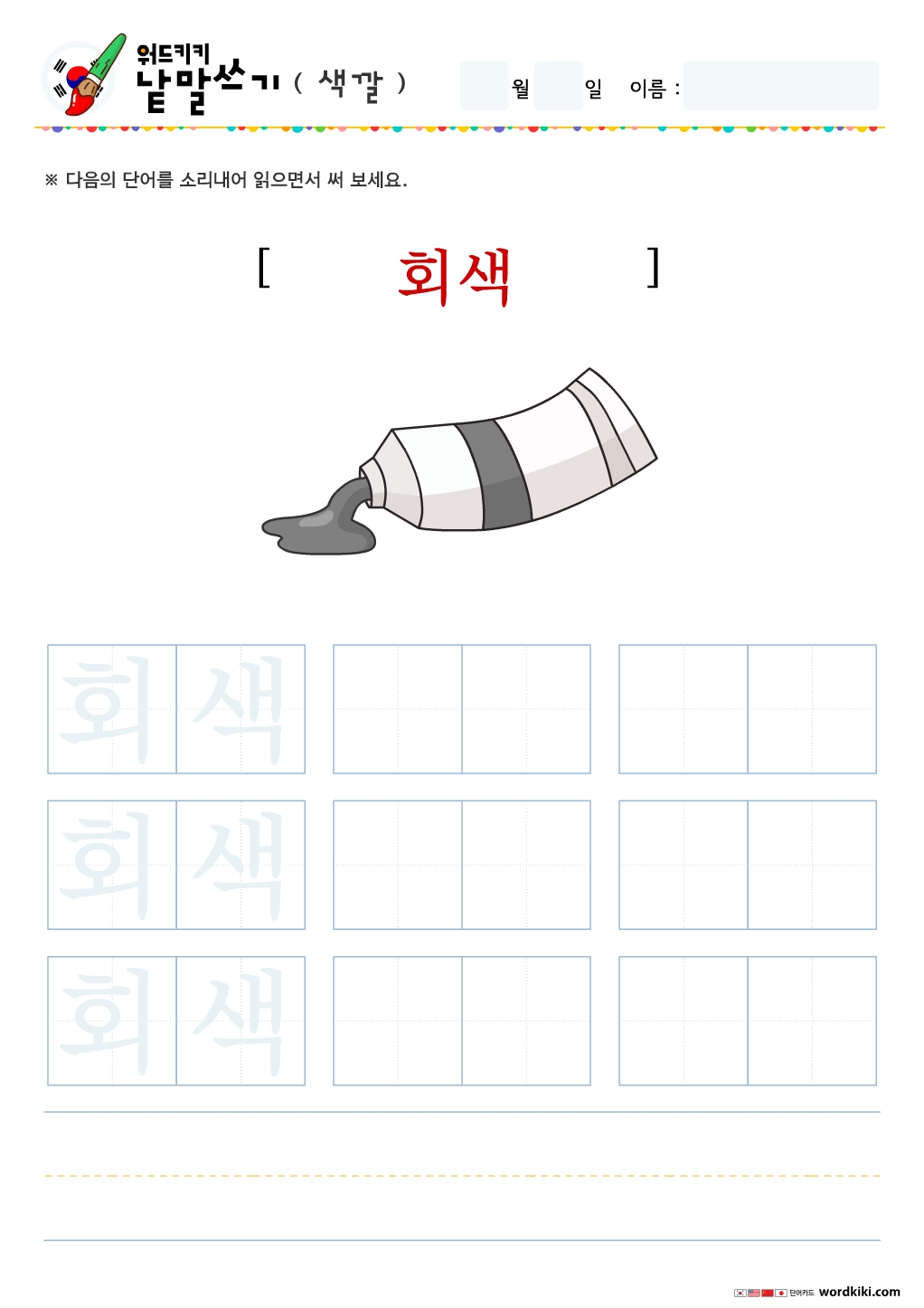 | [한글단어쓰기 10장] 05-1 한국어 색깔 단어쓰기 (큰글자1) - korean Writing - Color (0) | 2024.05.23 |