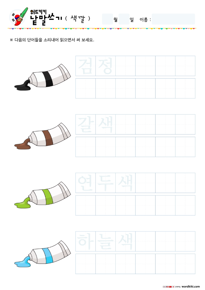 [한글단어쓰기 5장] 05-2 한국어 색깔 단어쓰기 (작은글자)