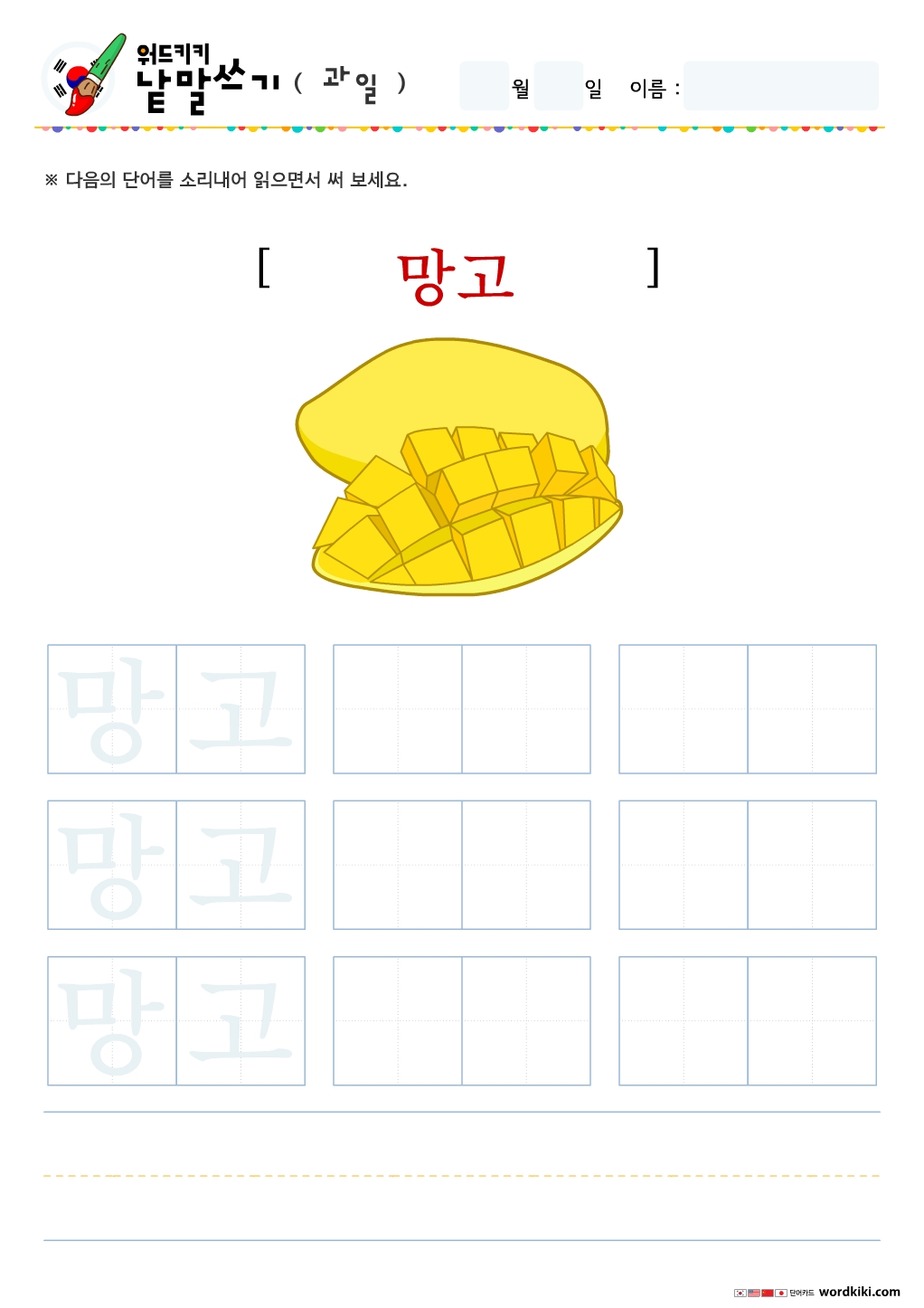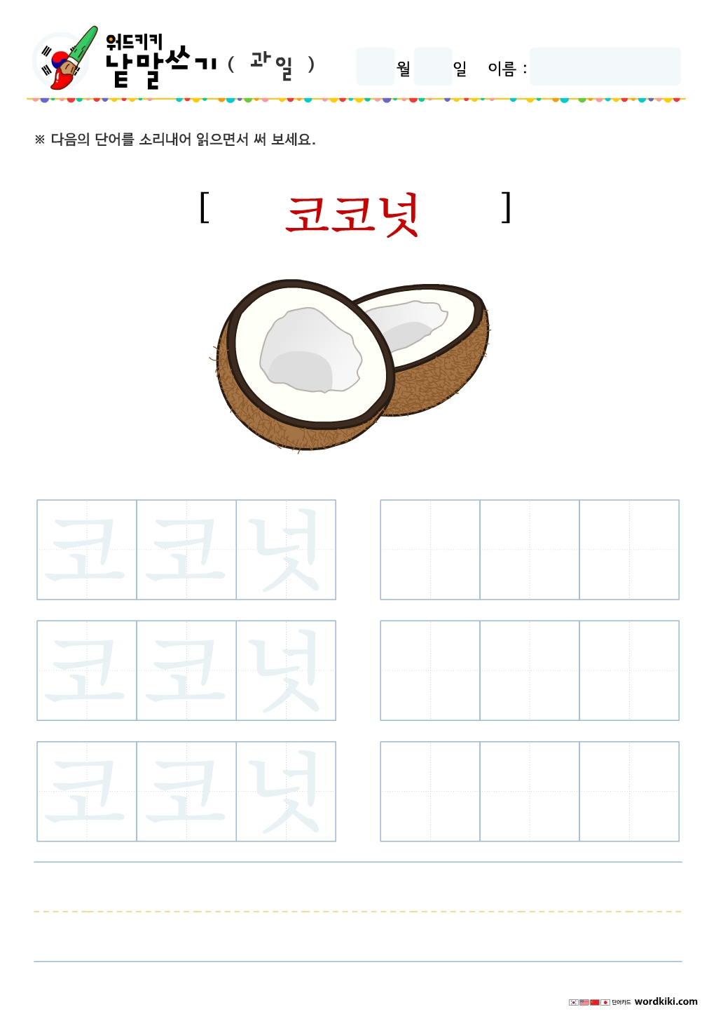 무료프린트학습지로 한글 낱말을 익히기 위한 쓰기 연습장입니다.