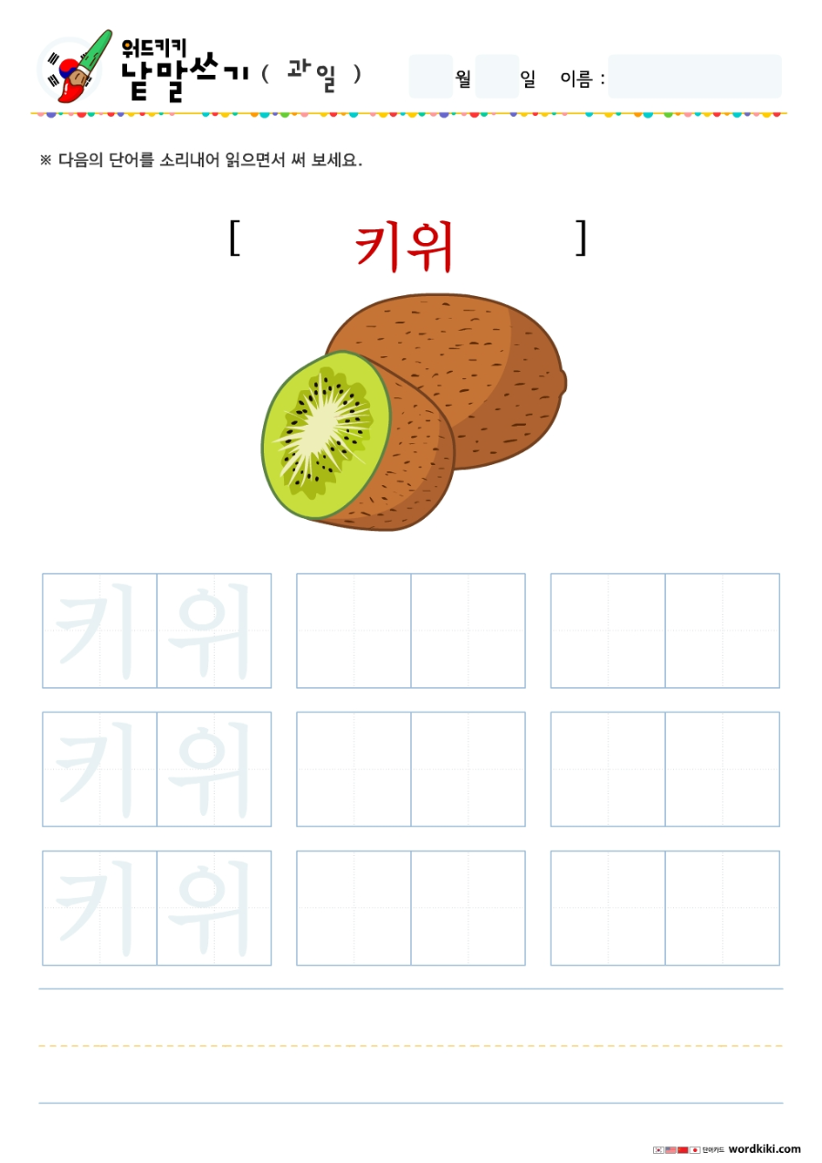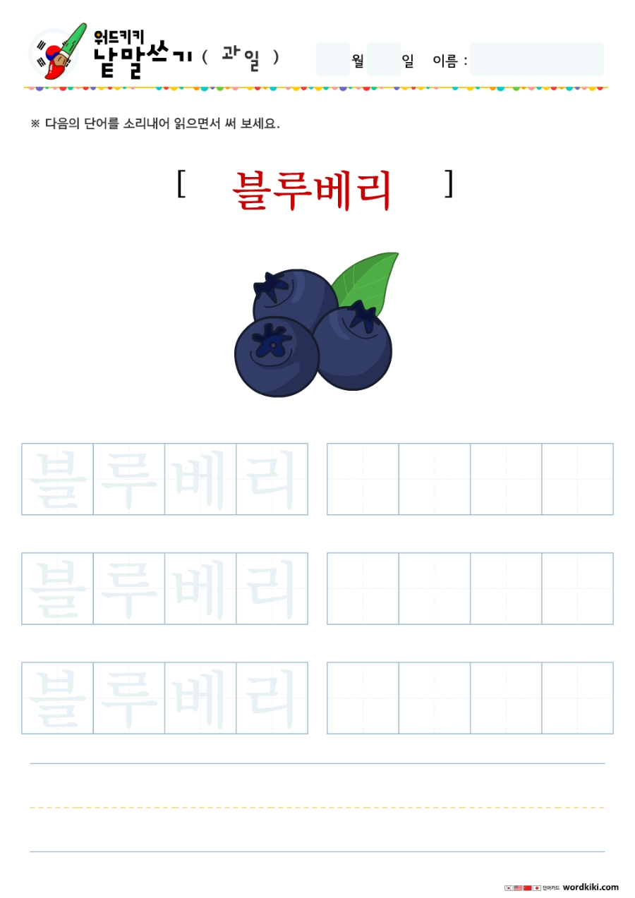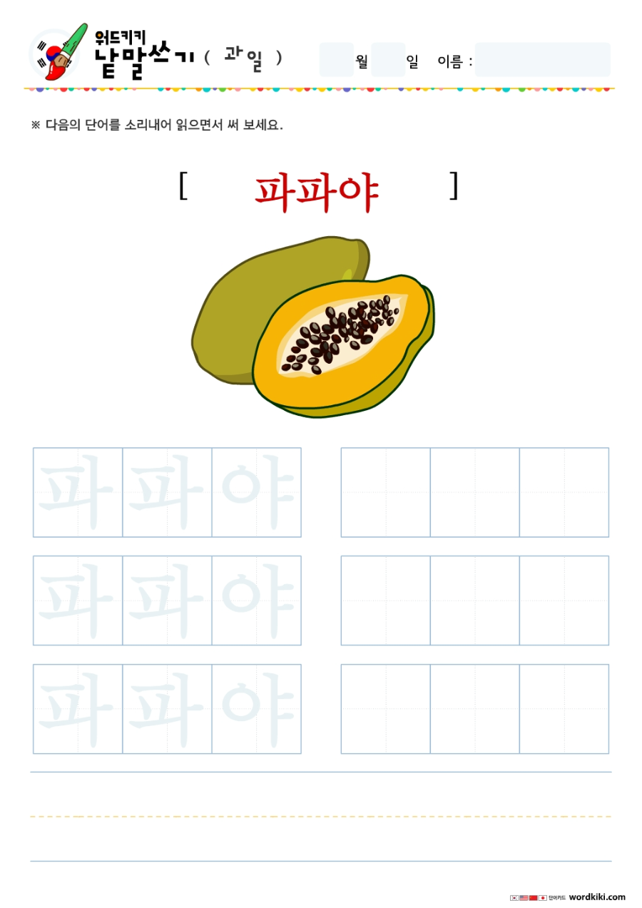 | [한글단어쓰기 12장] 06-1 한국어 과일 단어쓰기 (큰글자1) korean Writing - Fruit (0) | 2024.05.27 |