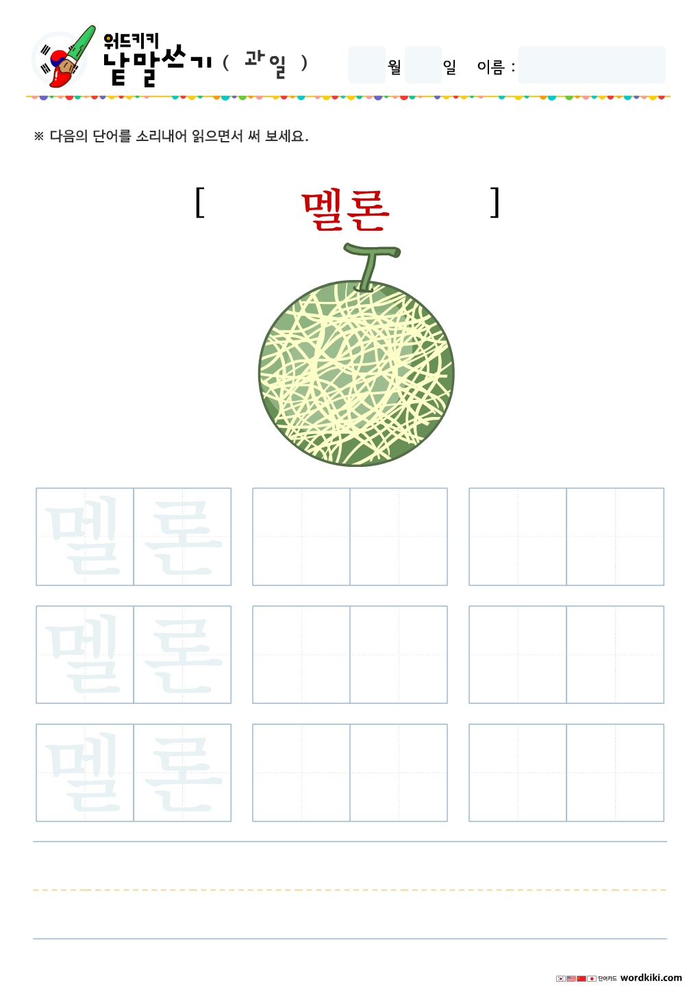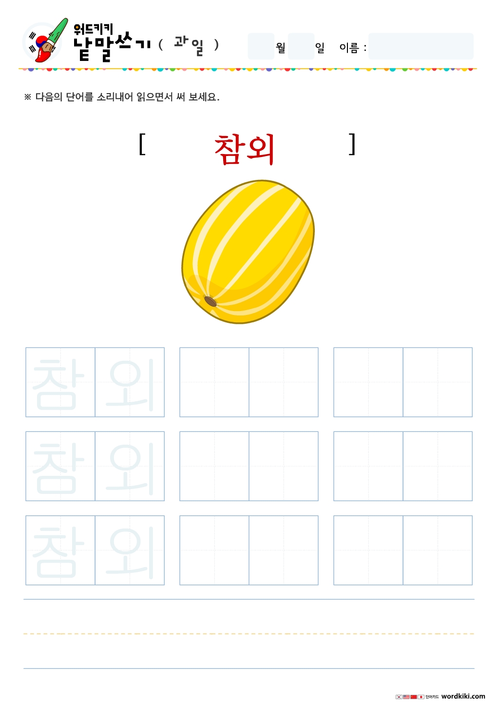 | [한글단어쓰기 6장] 06-2 한국어 과일 단어쓰기 (작은글자) (0) | 2024.05.29 |