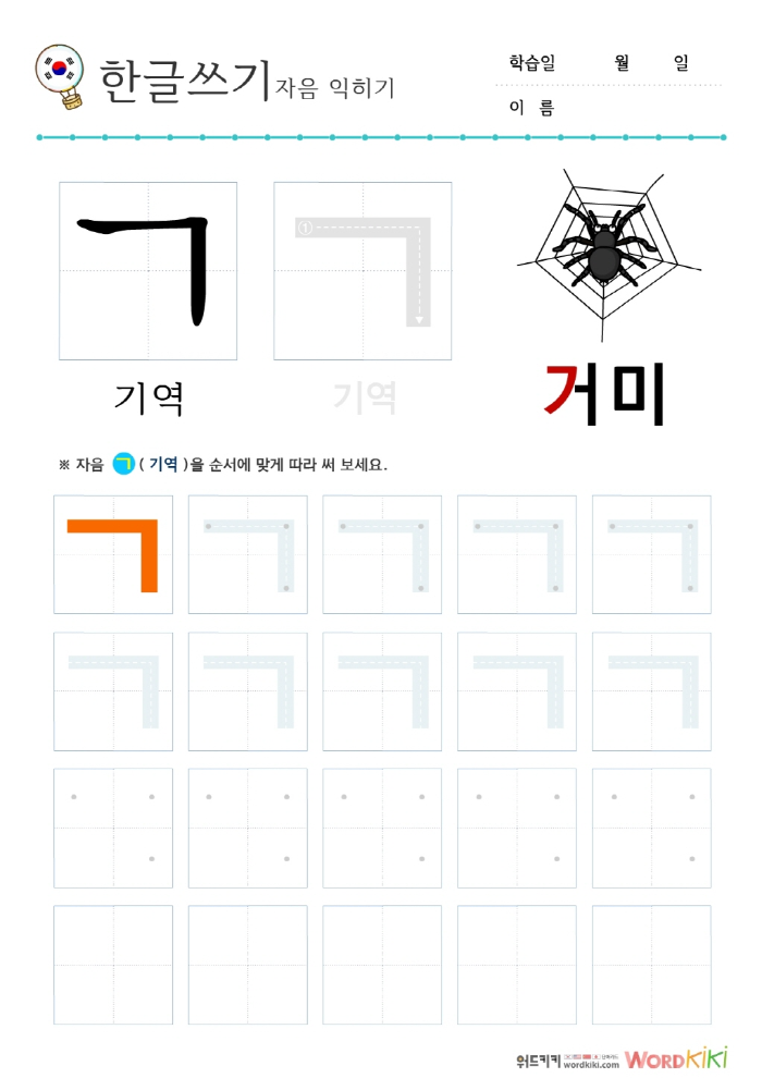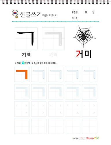 자음 쓰기(ㄱ) 기역 (한글 쓰기 연습)