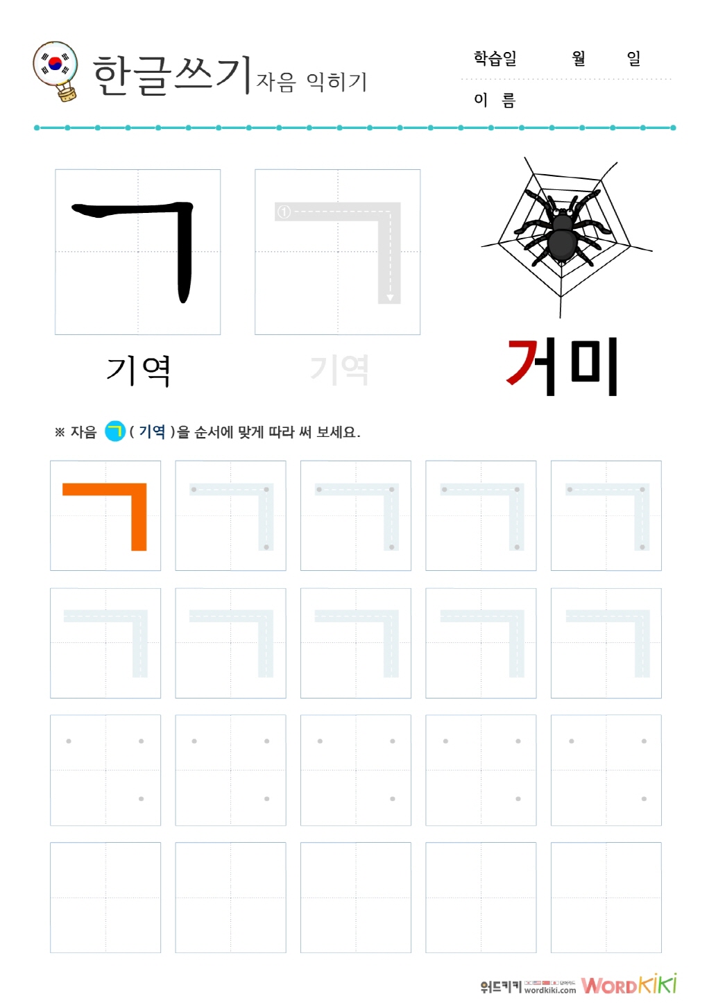 자음 쓰기(ㄱ) 기역 (한글 쓰기 연습)