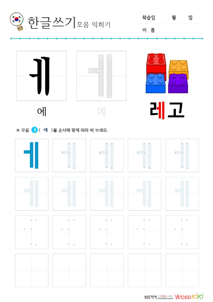 [한글모음쓰기 6장] 모음+이미지② - 애/얘/에/예/와/왜