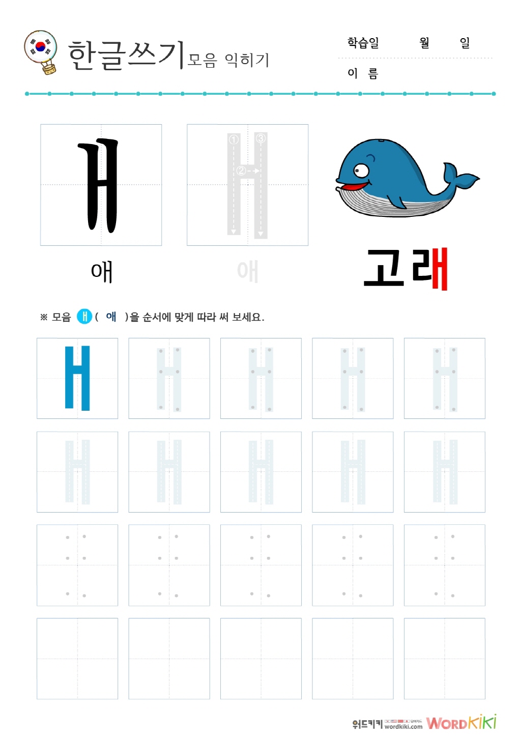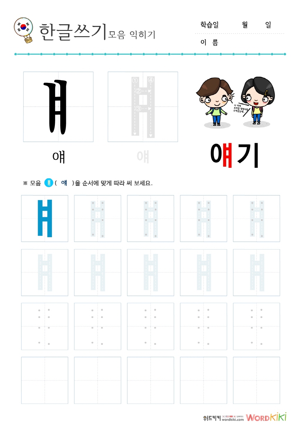 [한글모음쓰기 6장] 모음+이미지② - 애/얘/에/예/와/왜