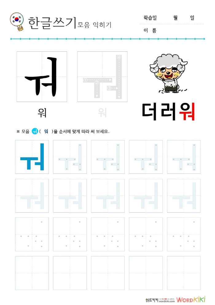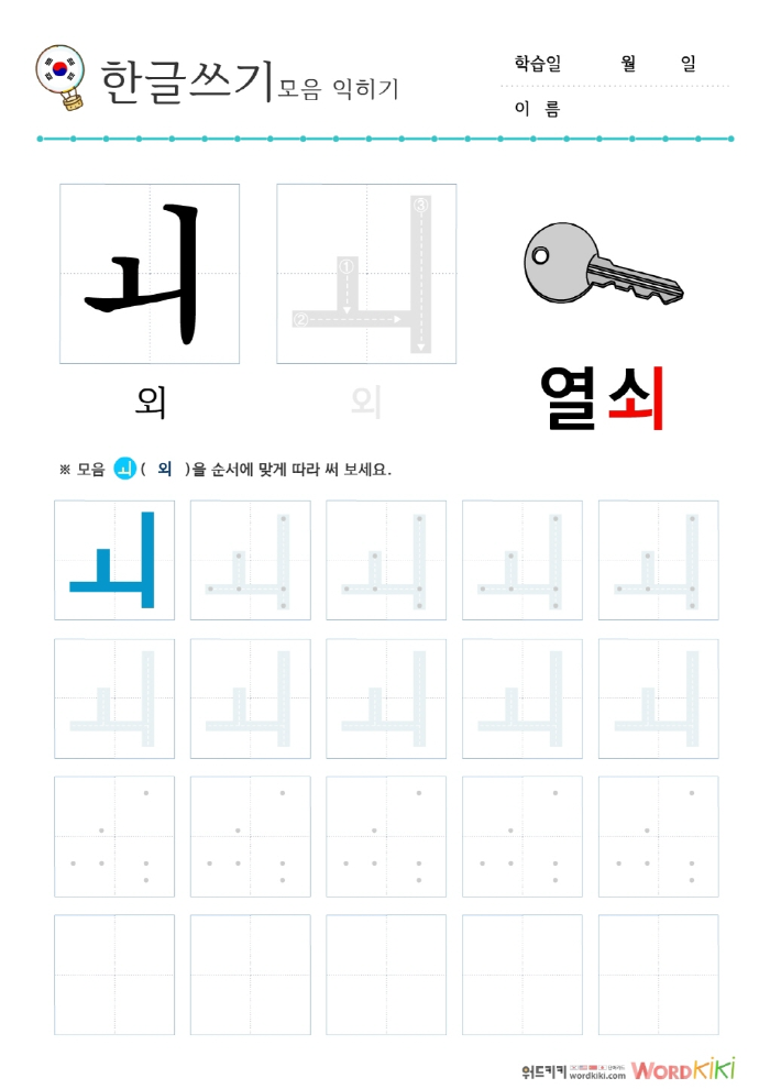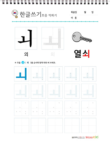 [한글모음쓰기 6장] 모음+이미지③ - 외/워/웨/위/의