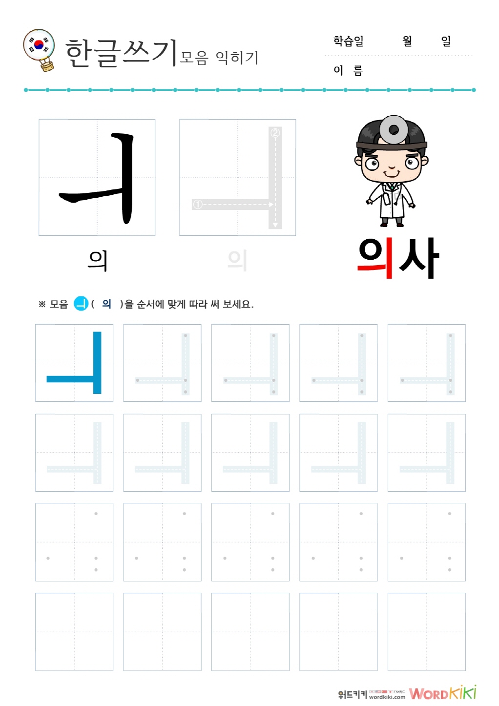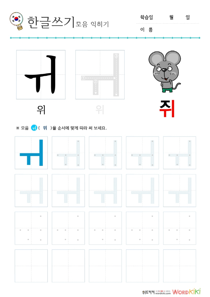 [한글모음쓰기 6장] 모음+이미지③ - 외/워/웨/위/의