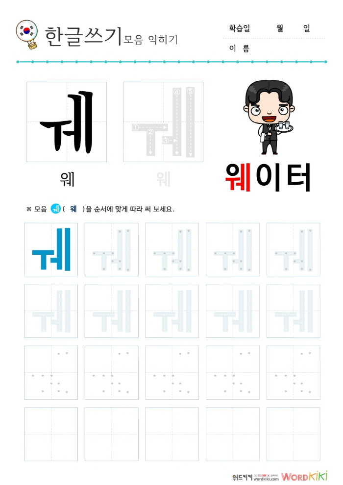 | [한글모음쓰기 6장] 모음+이미지② - 애/얘/에/예/와/왜 (0) | 2024.02.15 |