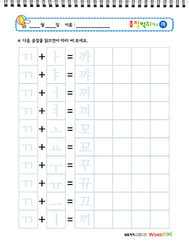 음절쓰기 – 까/따/싸/빠/짜 (한글 쓰기 연습)