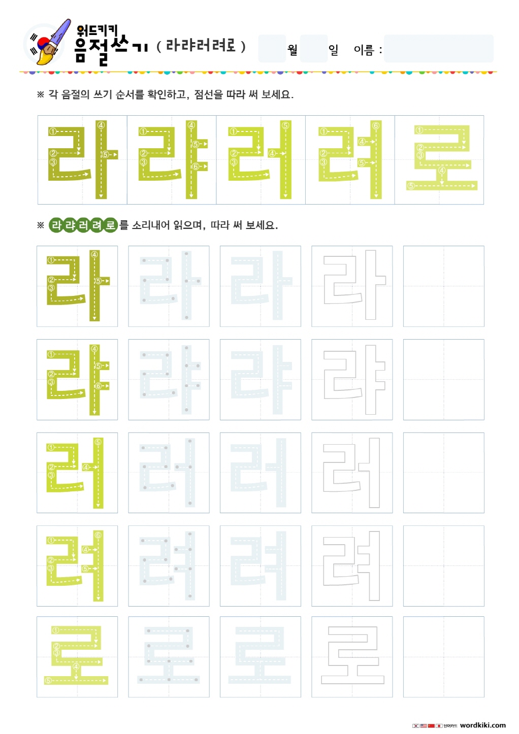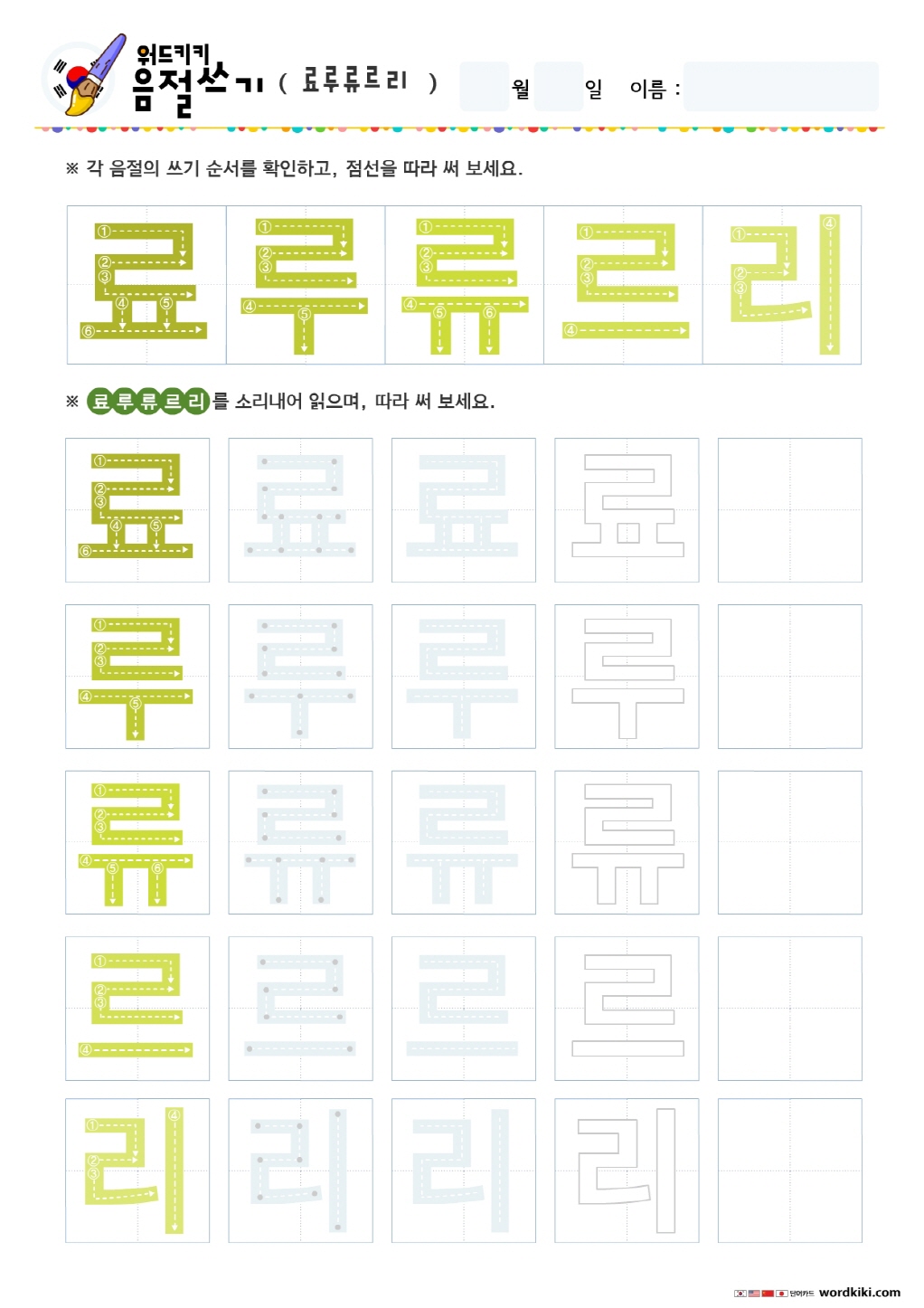 라랴러려로료루류르리 쓰기