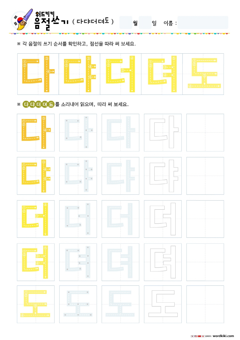 다댜더뎌도됴두듀드디 쓰기