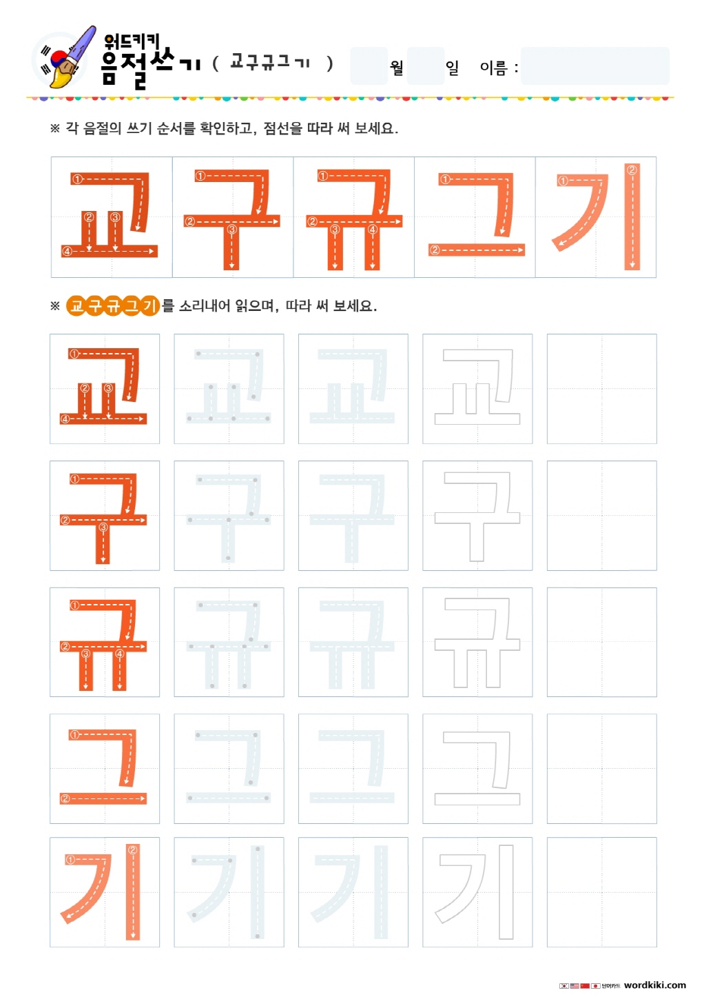 음절쓰기 – 가갸거겨고교구규 쓰기 연습