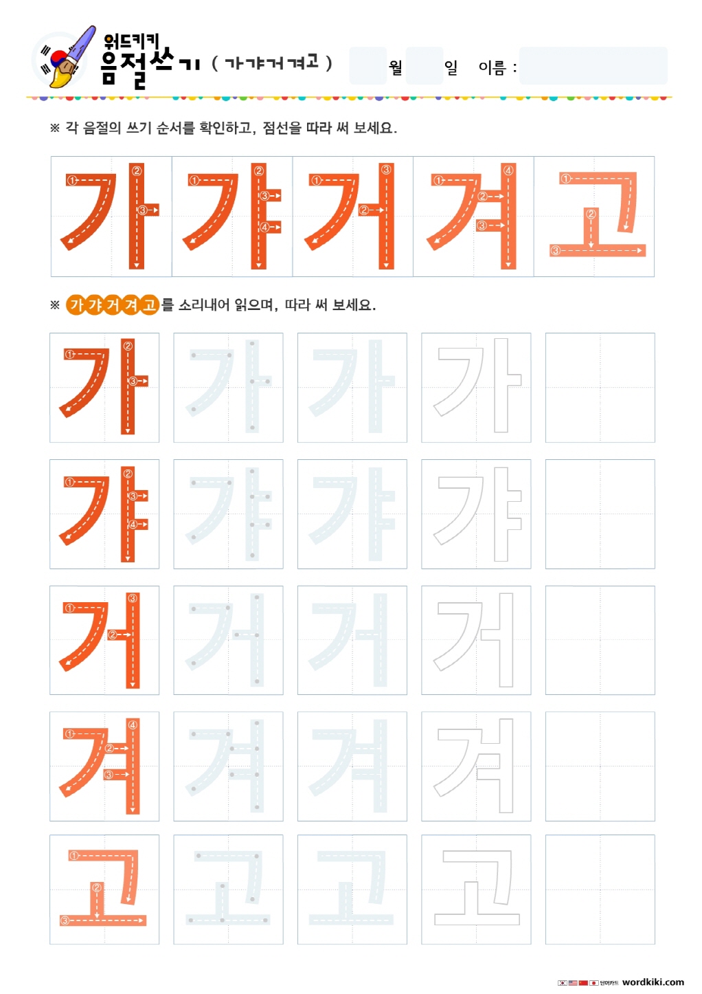 한글가갸거겨쓰기/음절쓰기/가갸거겨쓰는순서/음절쓰기순서프린트학습지/엄마표한글/유아한글/어린이한글학습/한글플래시카드/가나다 쓰는 순서/ 가나다쓰기순서/가나다쓰기