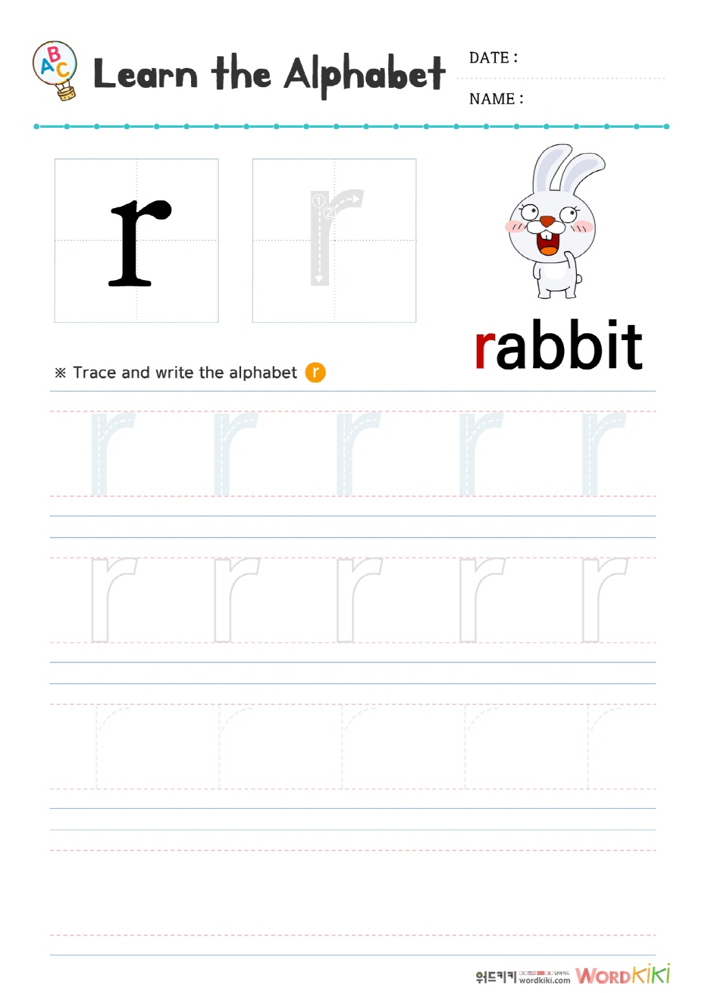 알파벳소문자쓰기, 알파벳 따라쓰기