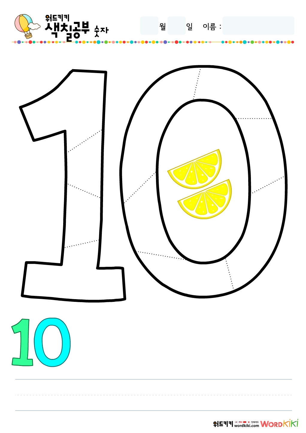색칠공부 숫자테마 - 숫자10부터 10까지 색칠하기