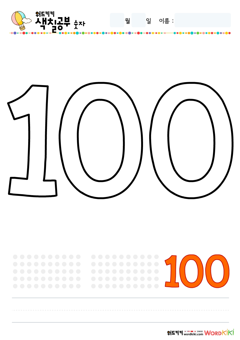 어린이숫자그림 - 숫자 10부터 100 색칠공부