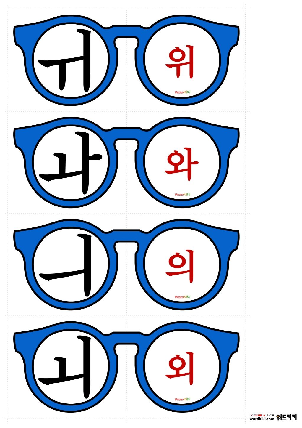 안경교구를 자른 뒤 반으로 접어 모음 학습에 활용 할 수 있습니다.