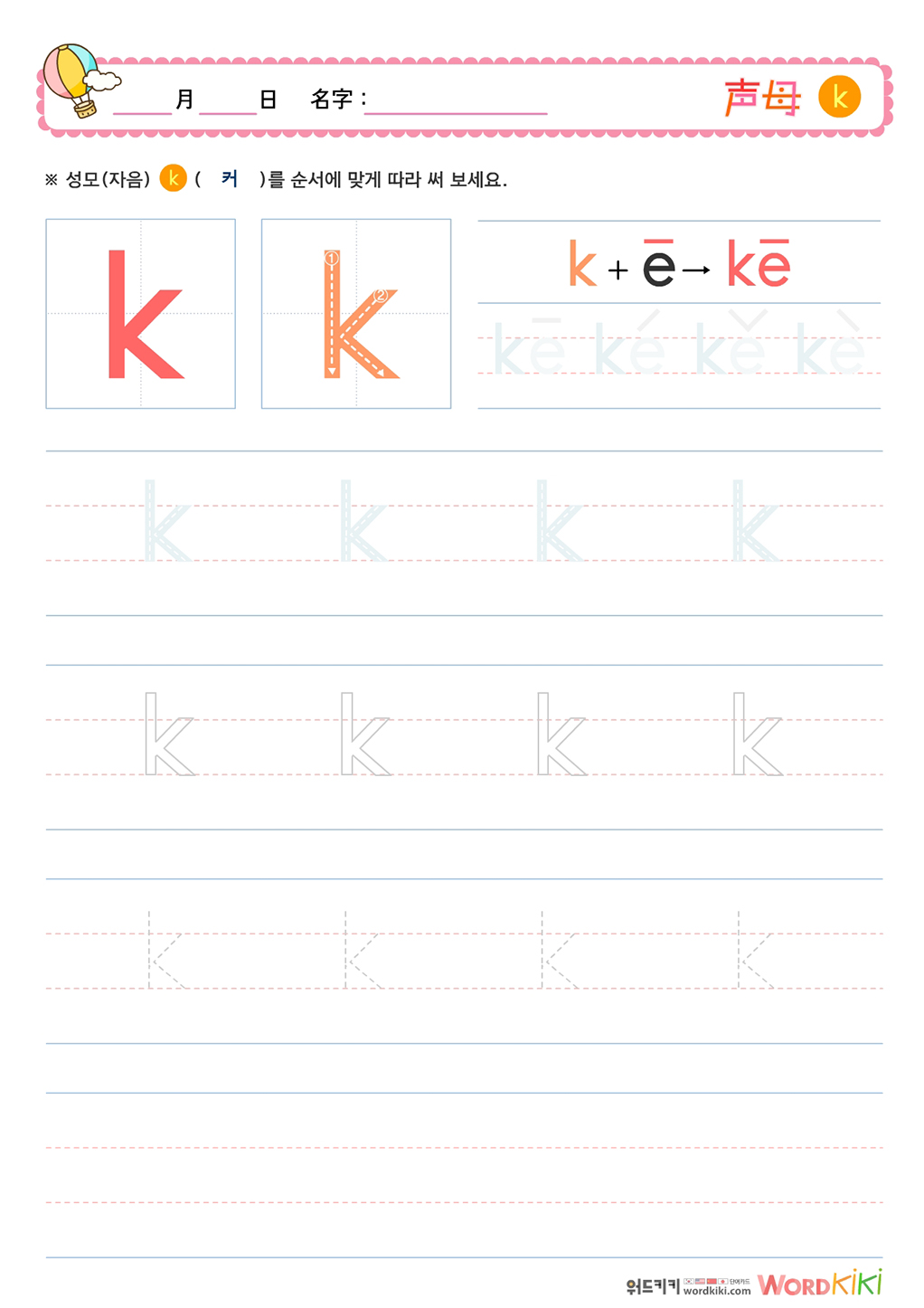무료프린트학습지로 중국어 성모 쓰기 (writing chinese) 연습장입니다.