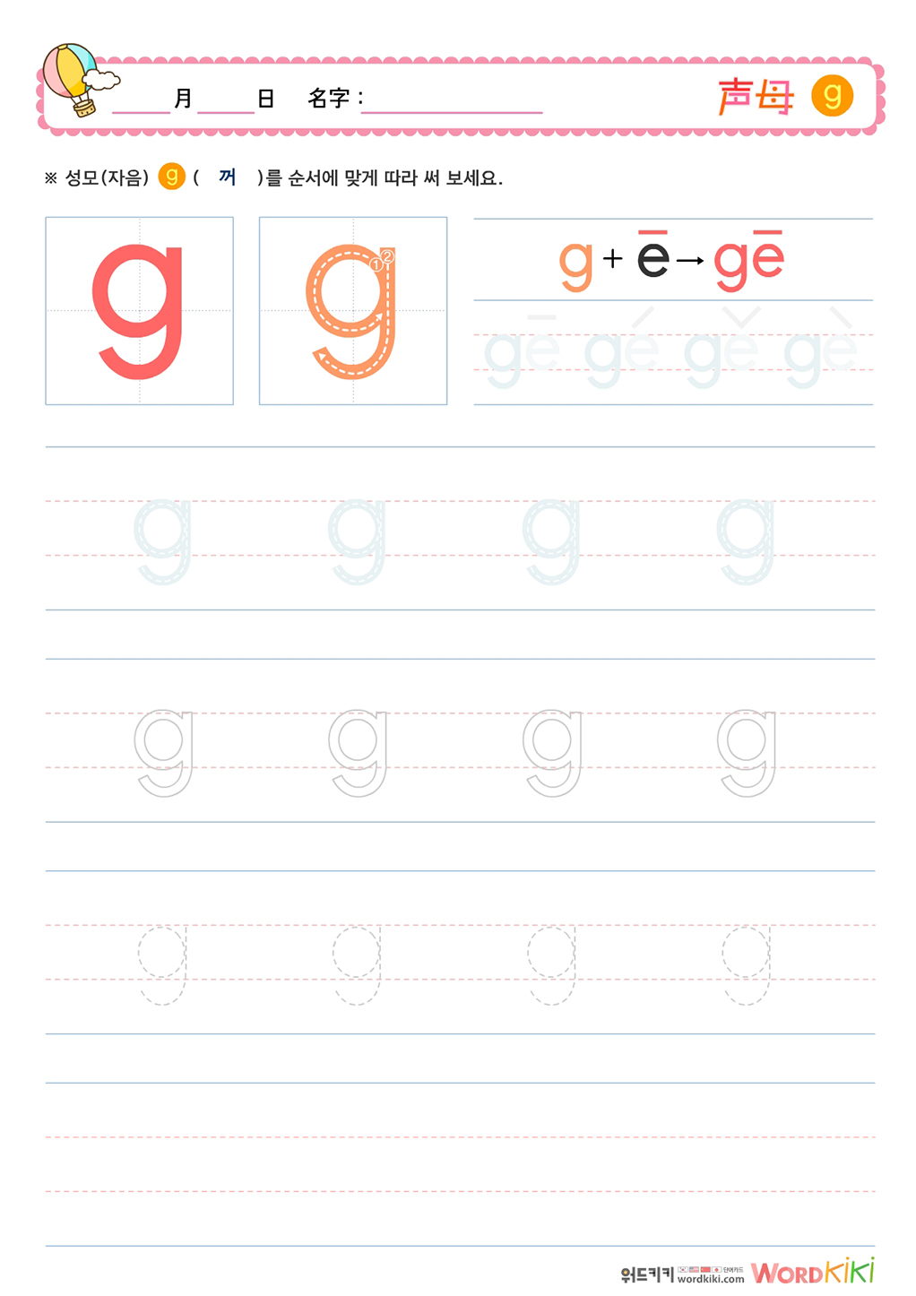 [한어병음쓰기 3장] 중국어 병음쓰기 – 성모(gkh)쓰기