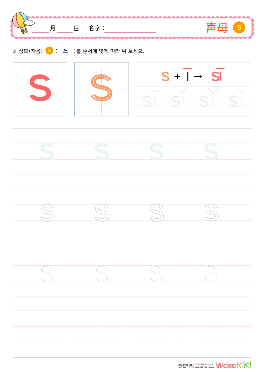 성모(声母)쓰기 - si