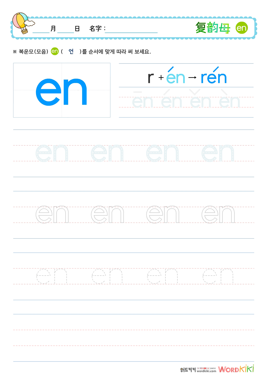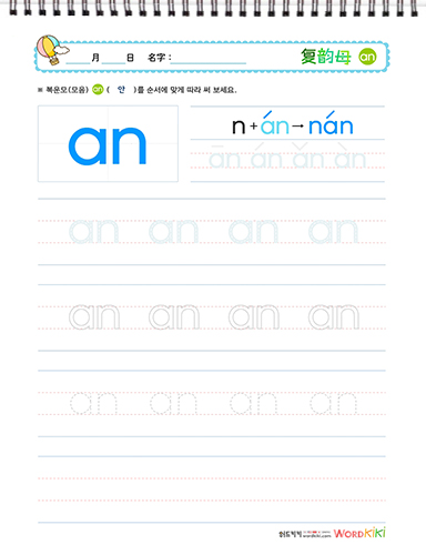 복운모(复韵母)쓰기 - an,en,in