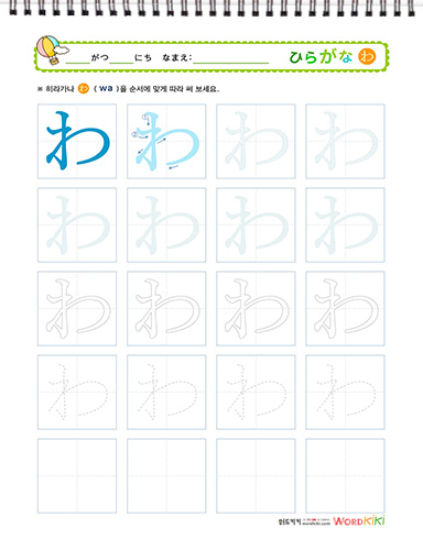 [히라가나 쓰기 3장] 히라가나 쓰기(와행) – Writing Hiragana わ行
