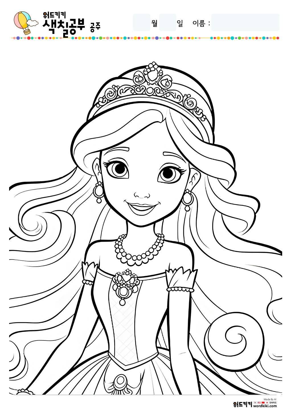 공주 색칠공부/공주 색칠/공주 색칠공부 도안/공주 색칠도안/공주 색칠하기/공주 색칠놀이/