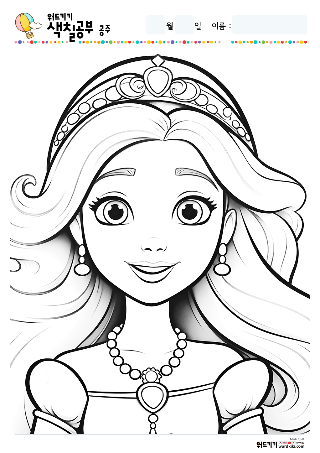 공주 색칠공부/공주 색칠/공주 색칠공부 도안/공주 색칠도안/공주 색칠하기/공주 색칠놀이/