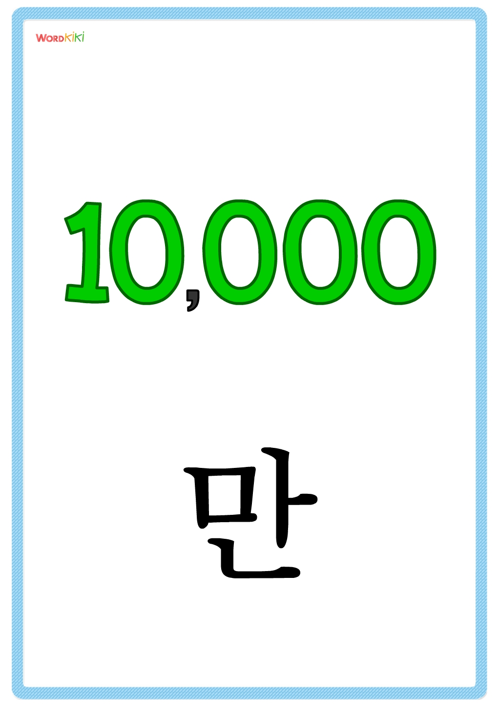 숫자낱말카드 이십, 삼십, 사십, 오십, 육십, 칠십, 팔십, 구십, 백, 천, 만, 십만, 백만, 천만, 억 단어카드입니다.