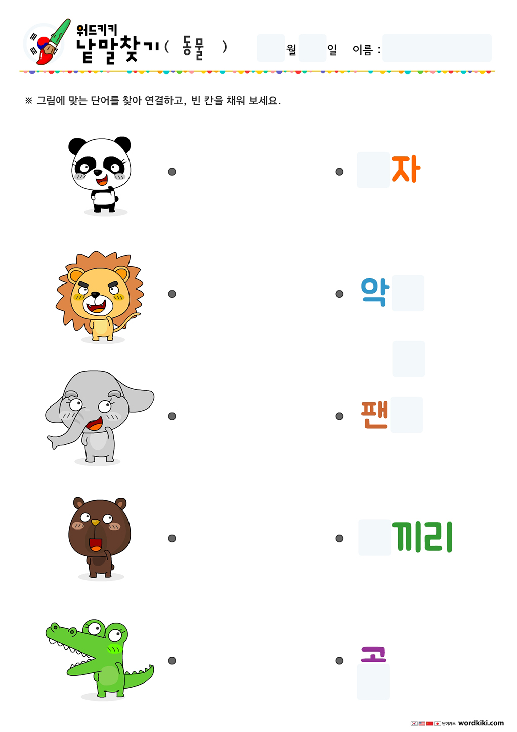 [유아한글공부 6장] 03 동물 - 한글낱말 그림연결하기