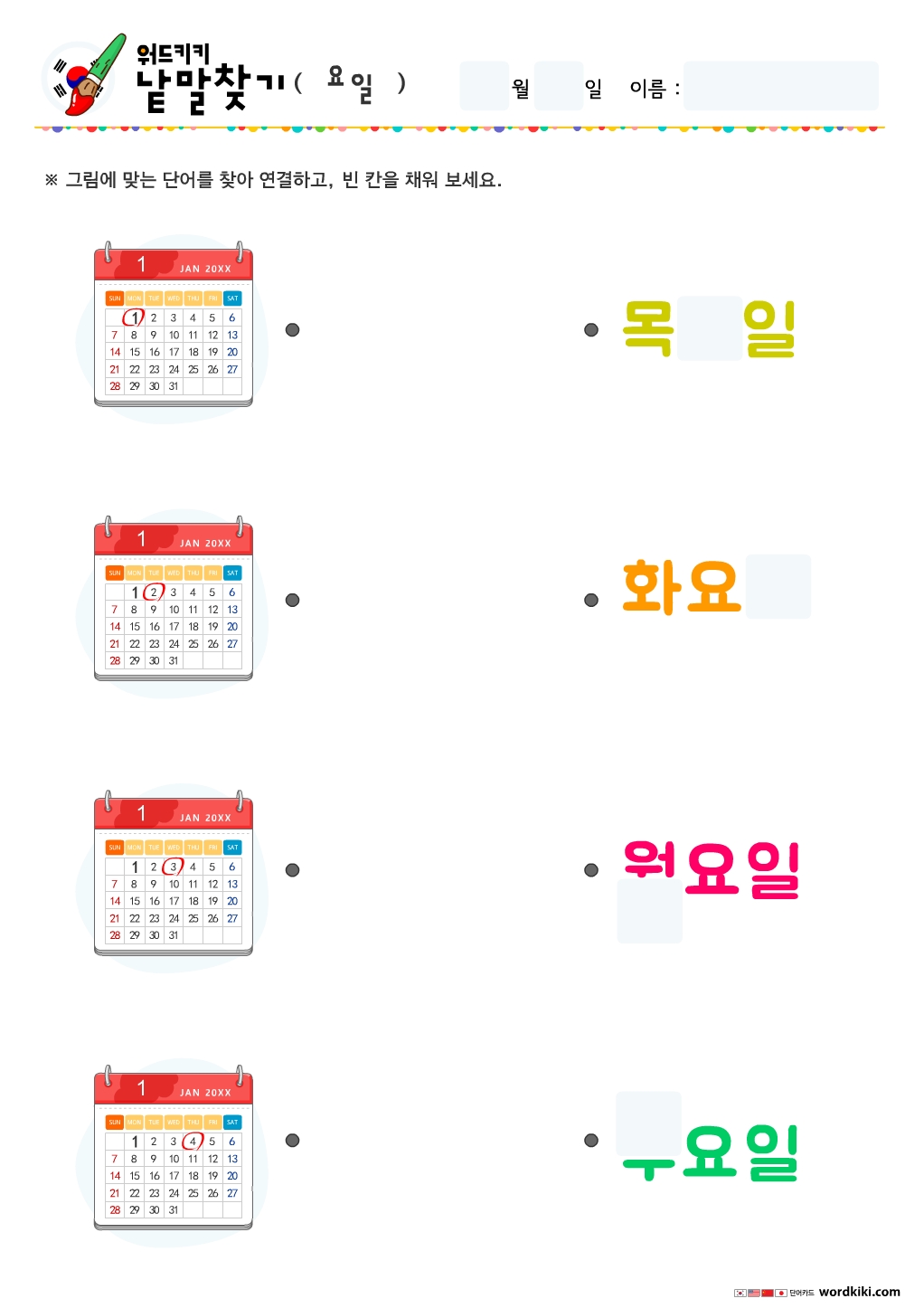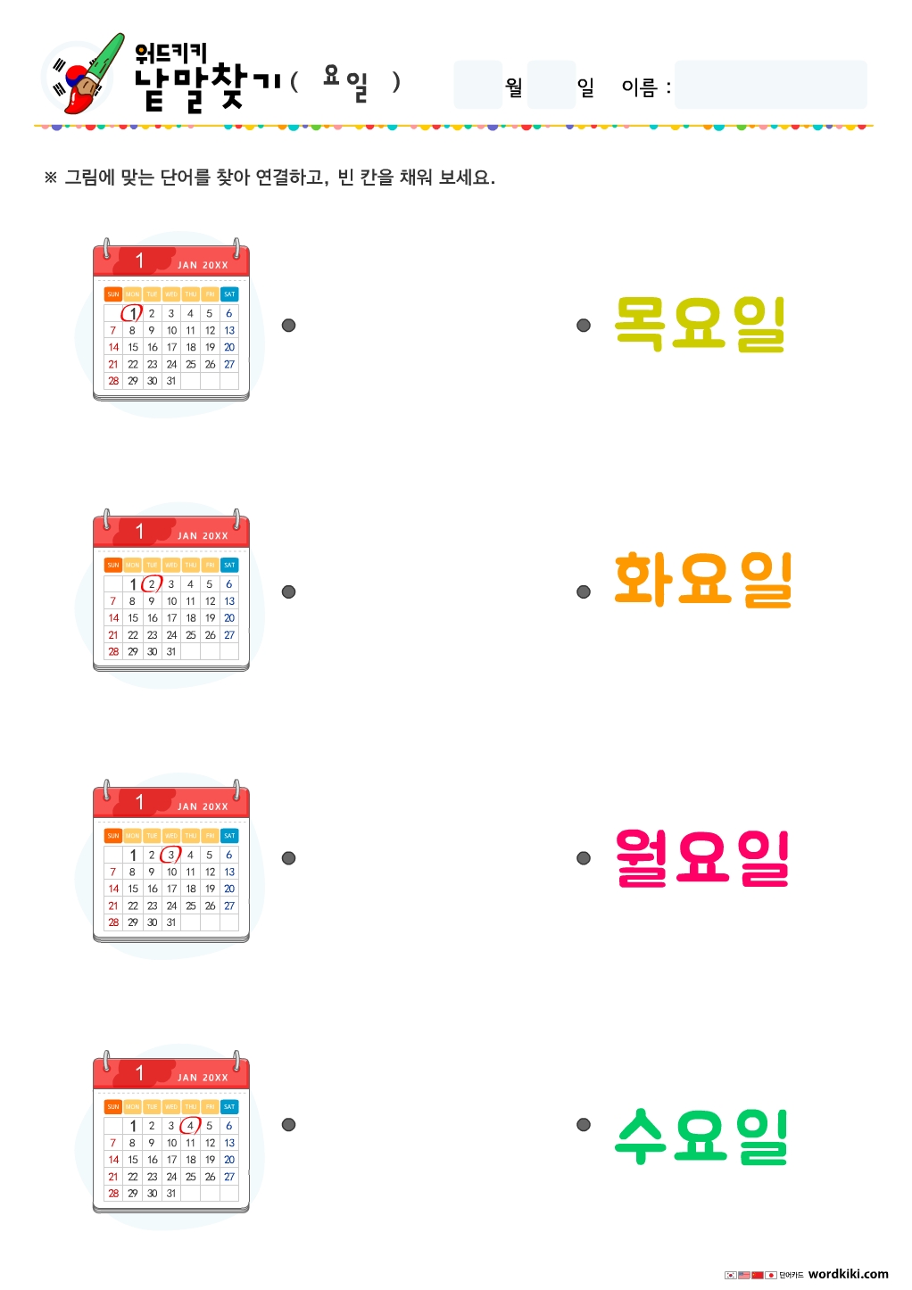 요일단어-단어연결하기