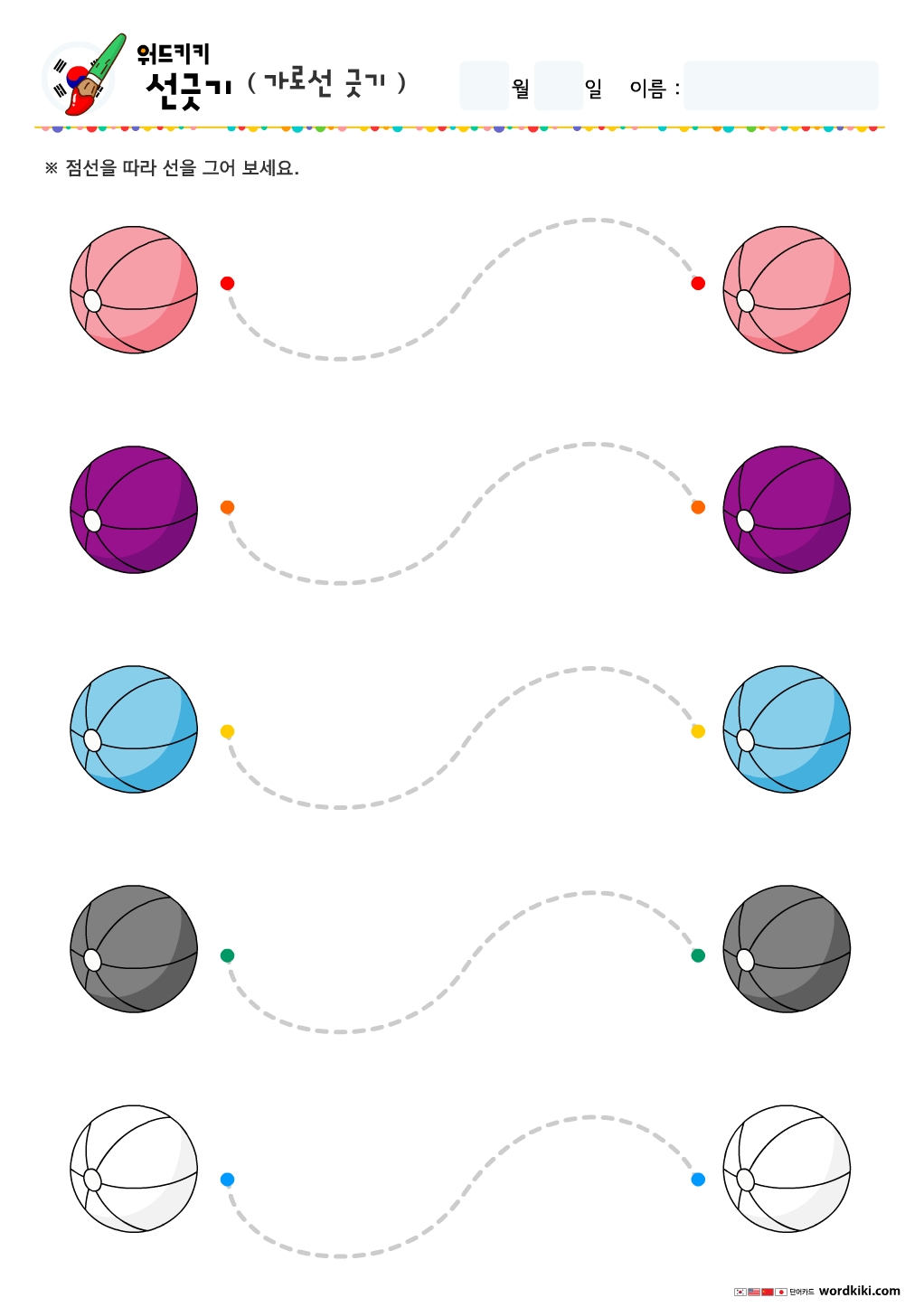 아이들과 함께크레파스나, 색연필등을 이용해 점선을 따라 선을 그리며