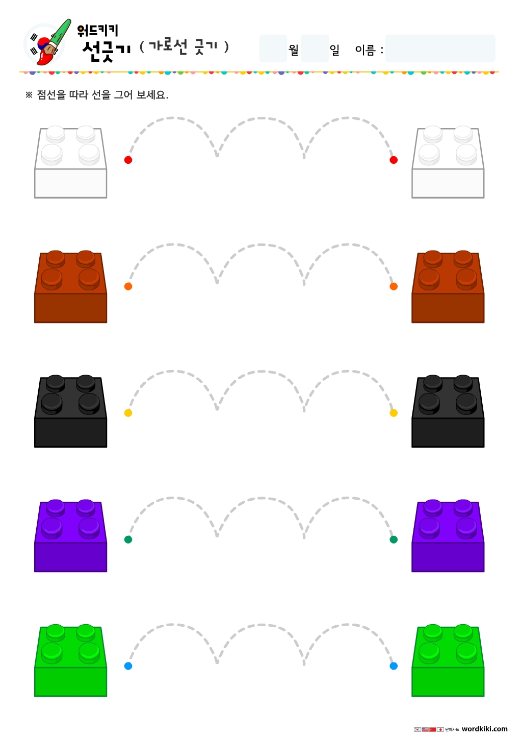아이들과 함께크레파스나, 색연필등을 이용해 점선을 따라 선을 그리며