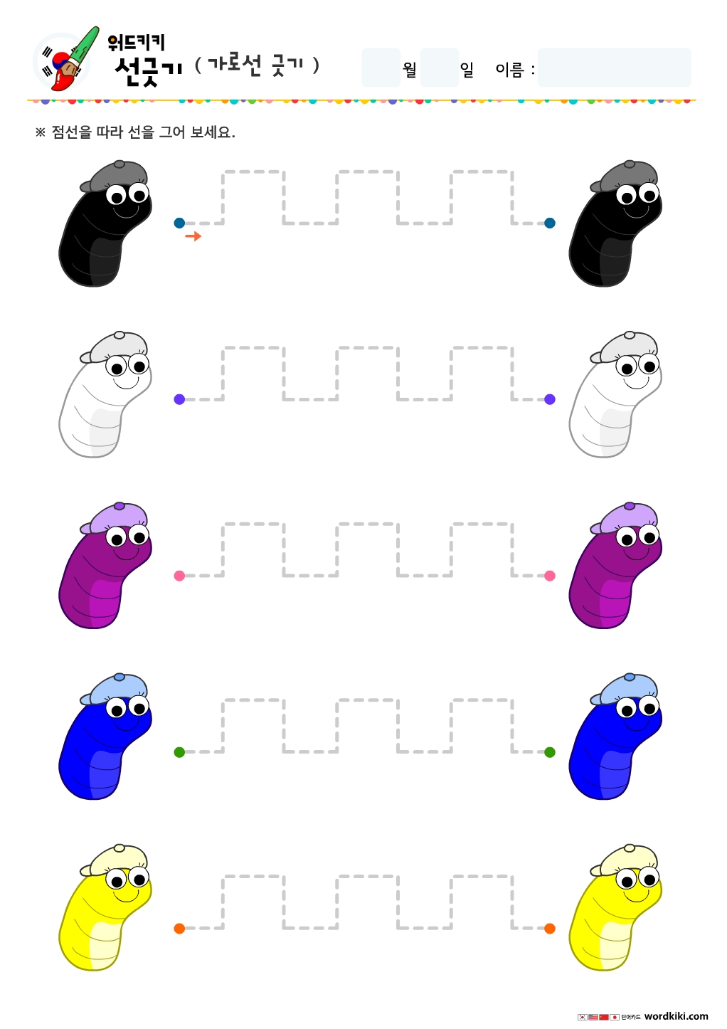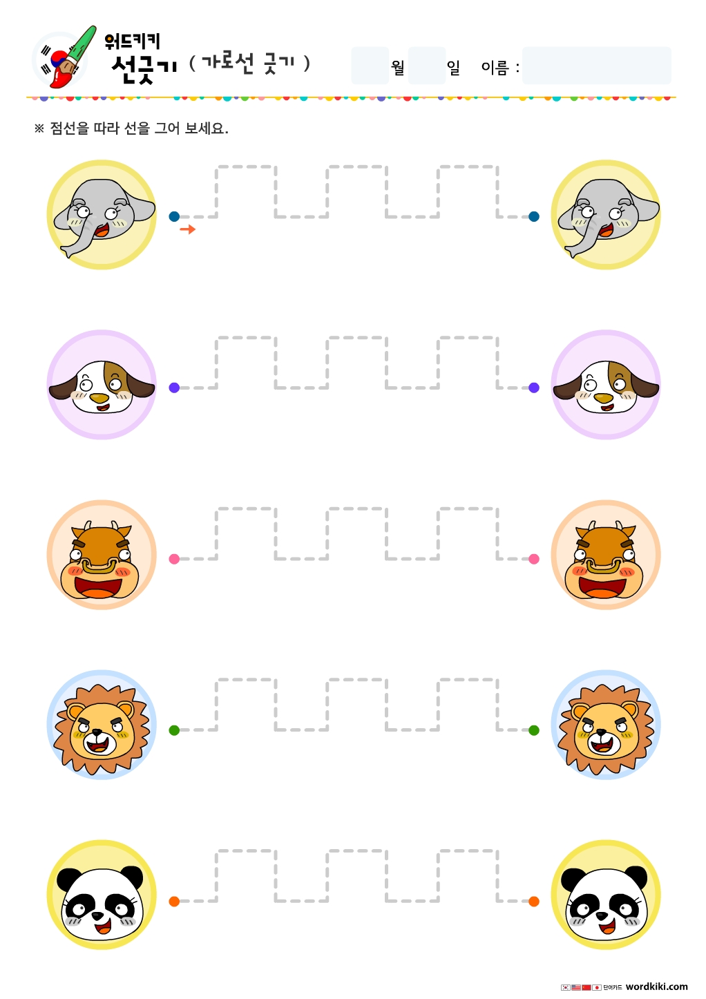 돌봄교실자료/엄마표홈스쿨/어린이활동지/Tracing/ Trace the lines/kids worksheet/선긋기/무료프린트학습지/ 점선따라그리기/선따라그리기/점선긋기/