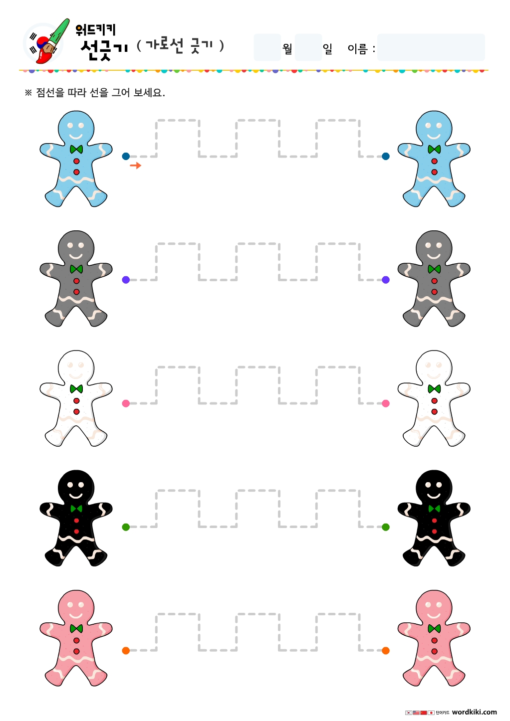 아이들과 함께크레파스나, 색연필등을 이용해 점선을 따라 선을 그리며