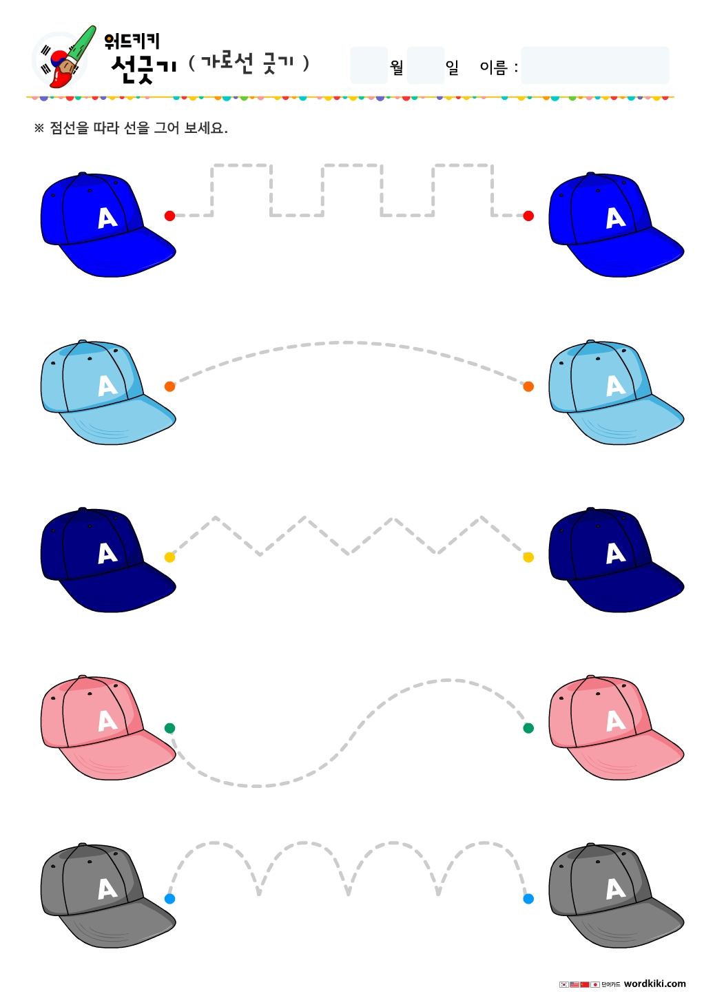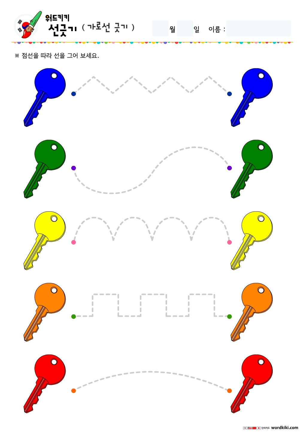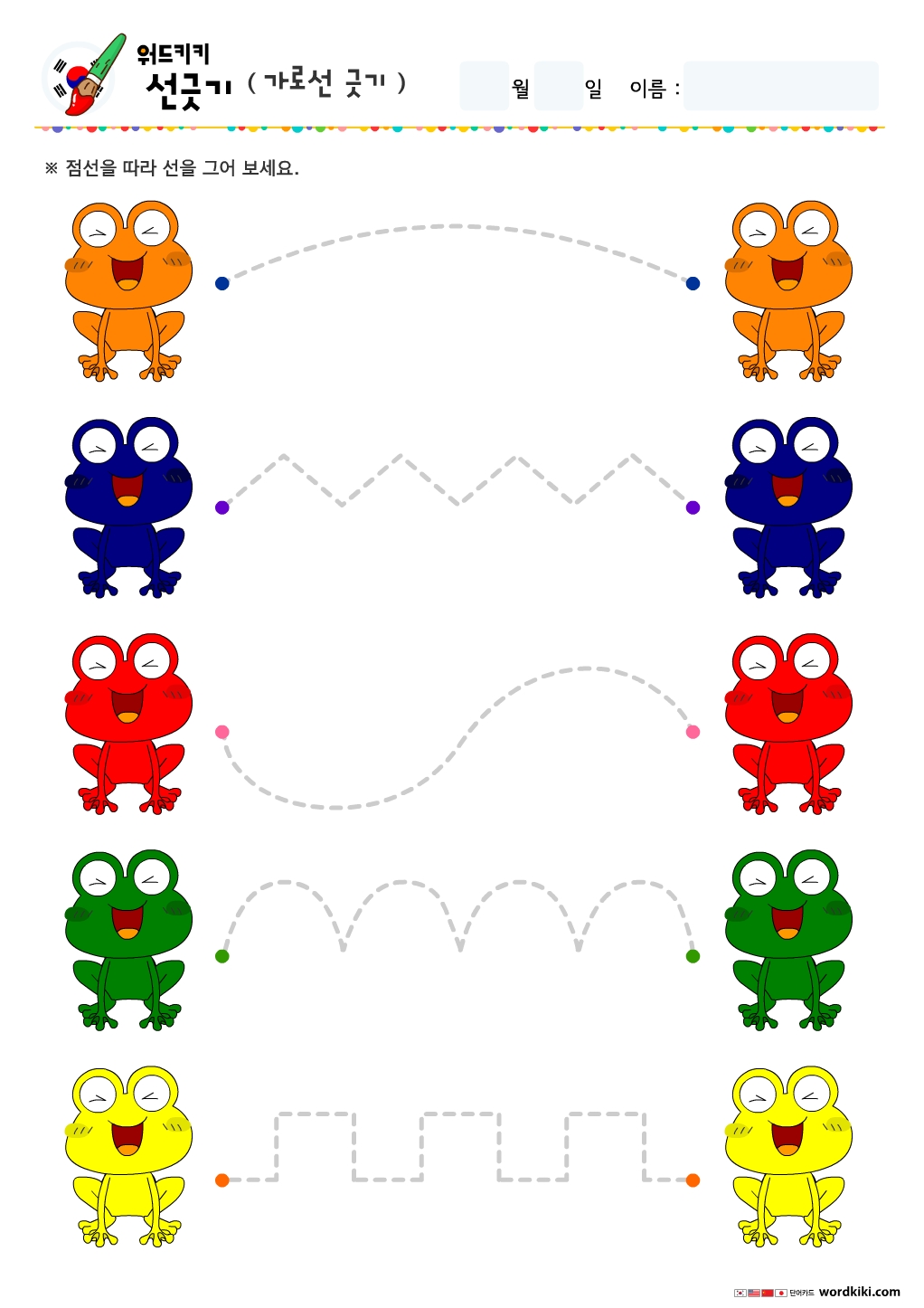 아이들과 함께크레파스나, 색연필등을 이용해 점선을 따라 선을 그리며