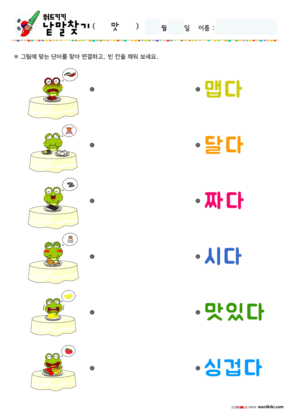 맛과 관련한 그림을 보고 맞는 단어를 찾아 선으로 연결해 주세요!!