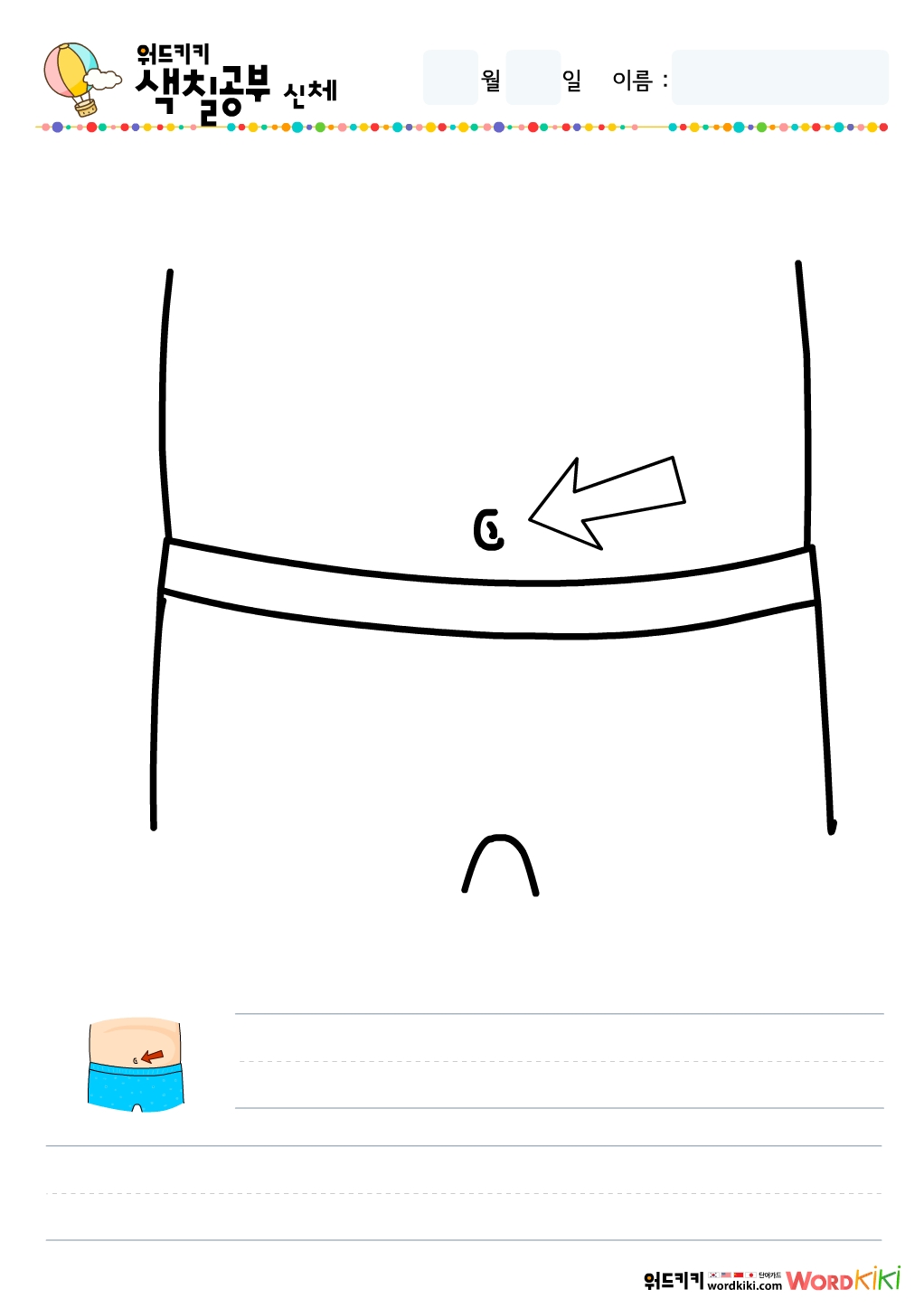 원하는 색칠공부 그림을 선택 후 A4용지에 프린트 해서예쁘게 색칠하고, 그림에 맞는 단어도 써 보세요. hand,chest,belly,navel,leg,thigh,knee,foot,front body