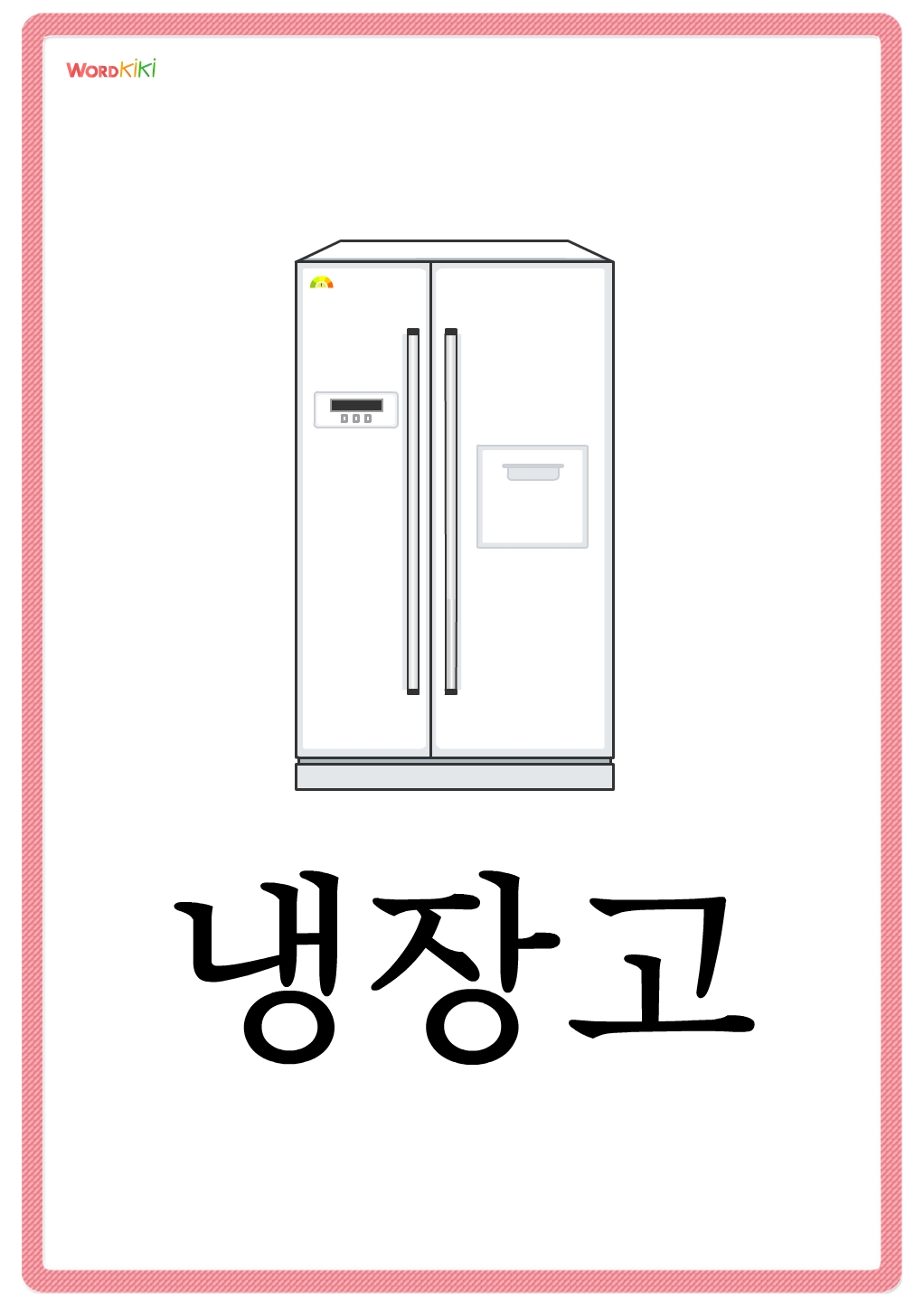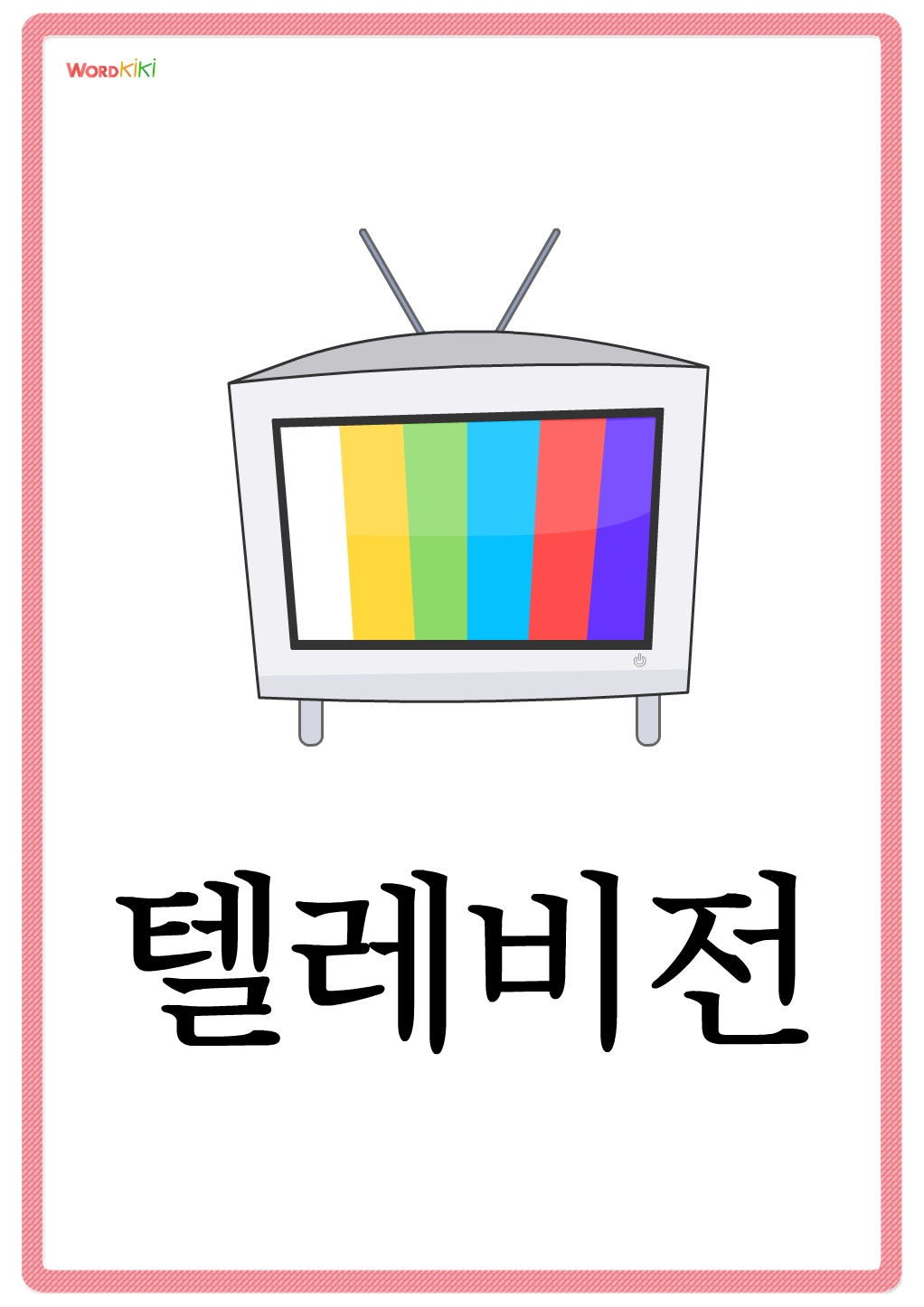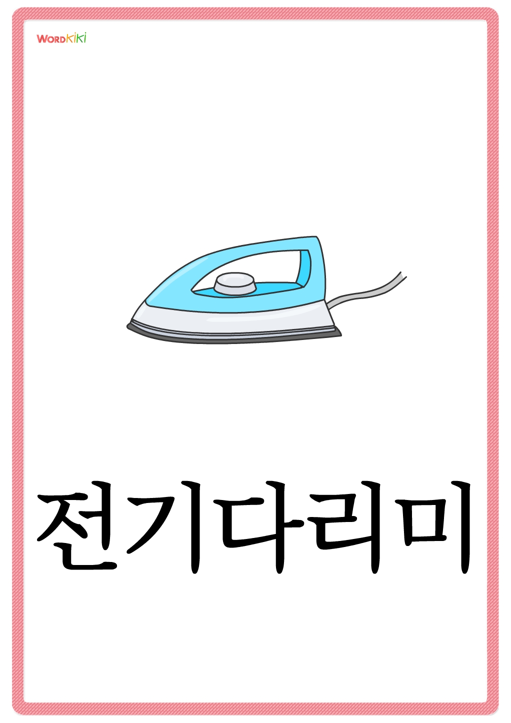 우리 아이 첫 한글 단어카드 중 가전제품 테마로 가전제품에 관련된 단어를 배울 수 있습니다.
