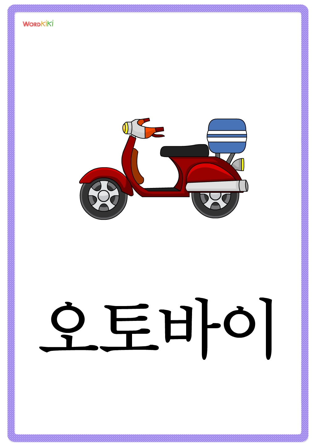 우리 아이 첫 한글 단어카드 중 탈것 테마로 탈것에 관련된 단어를 배울 수 있습니다.