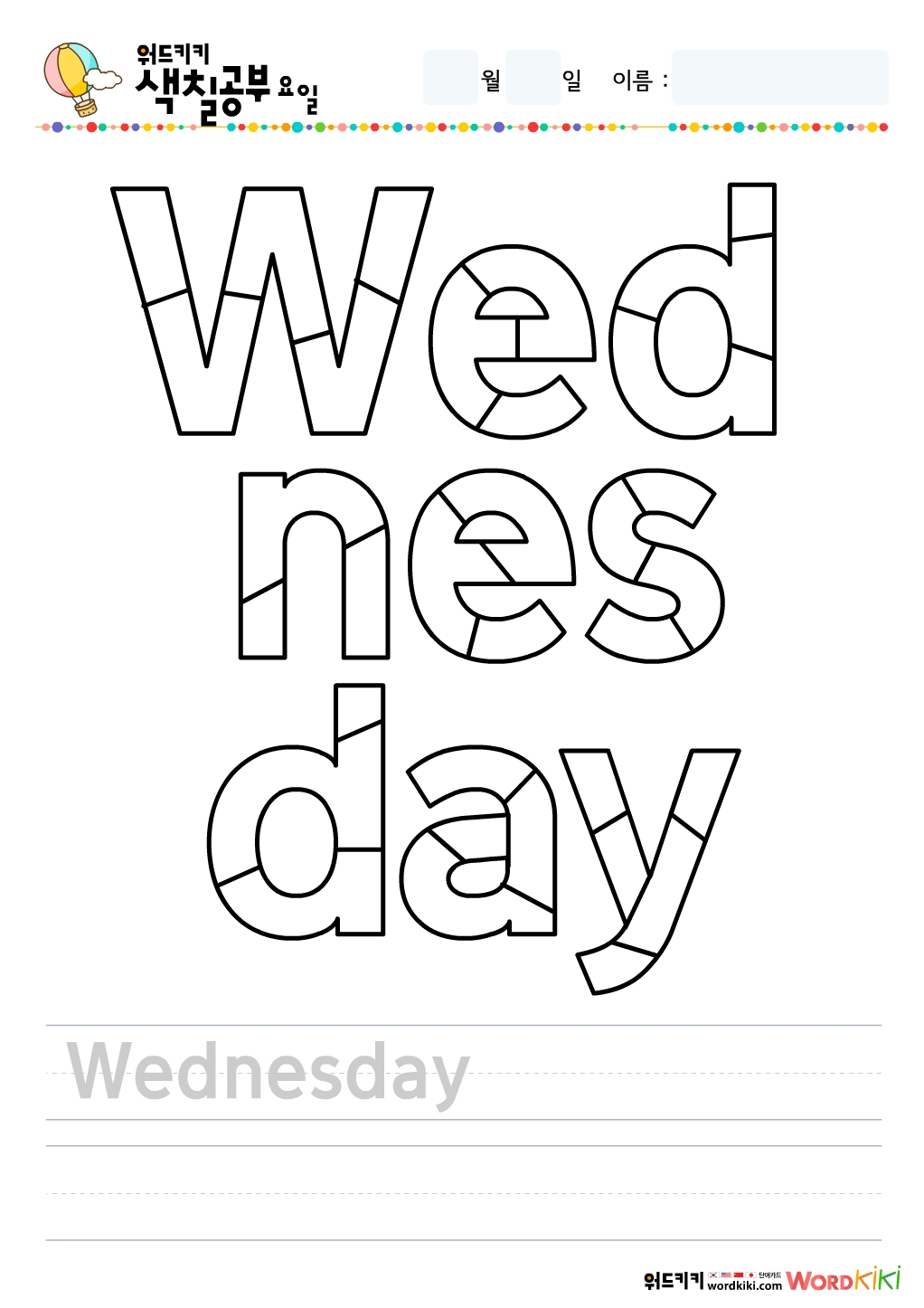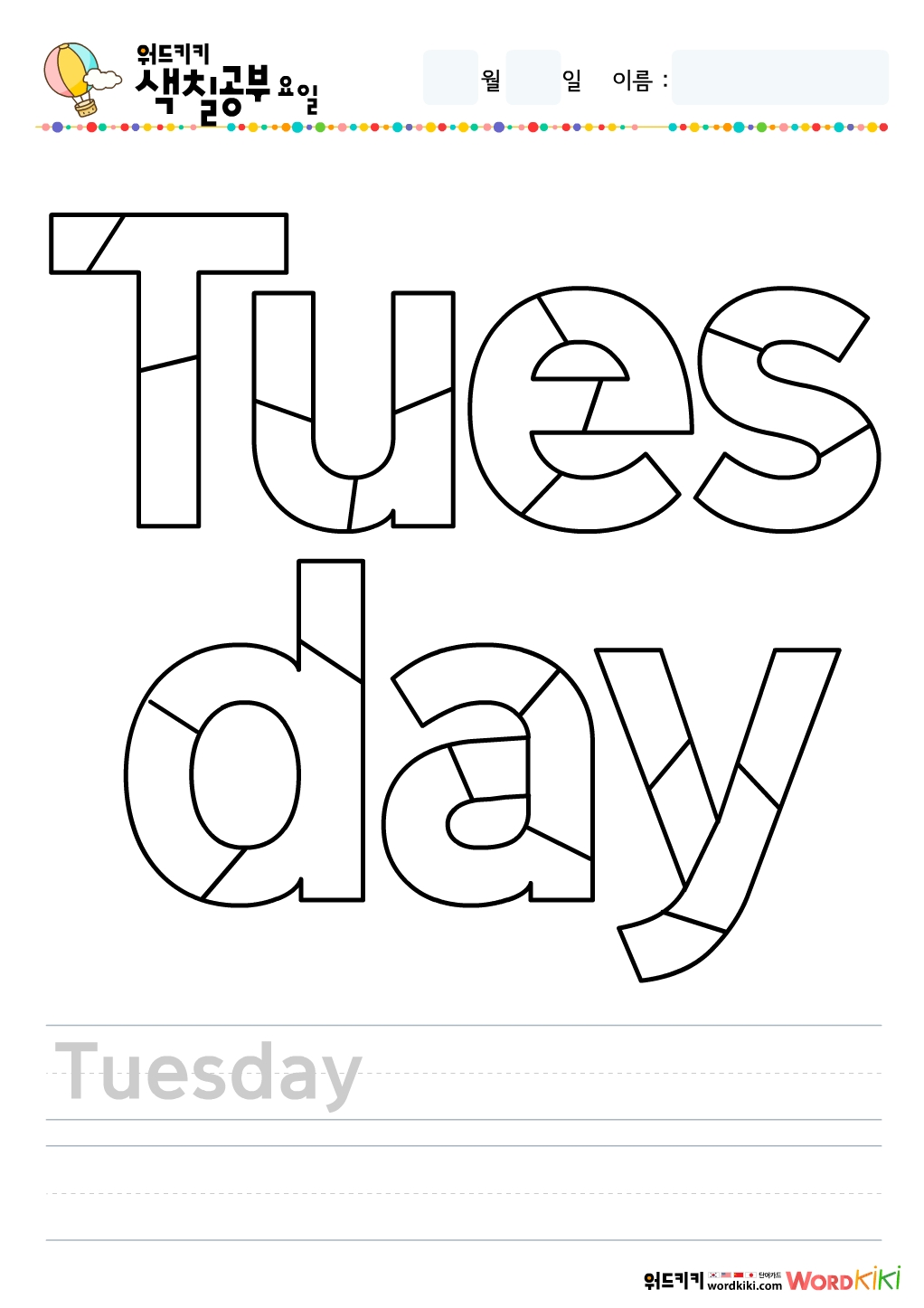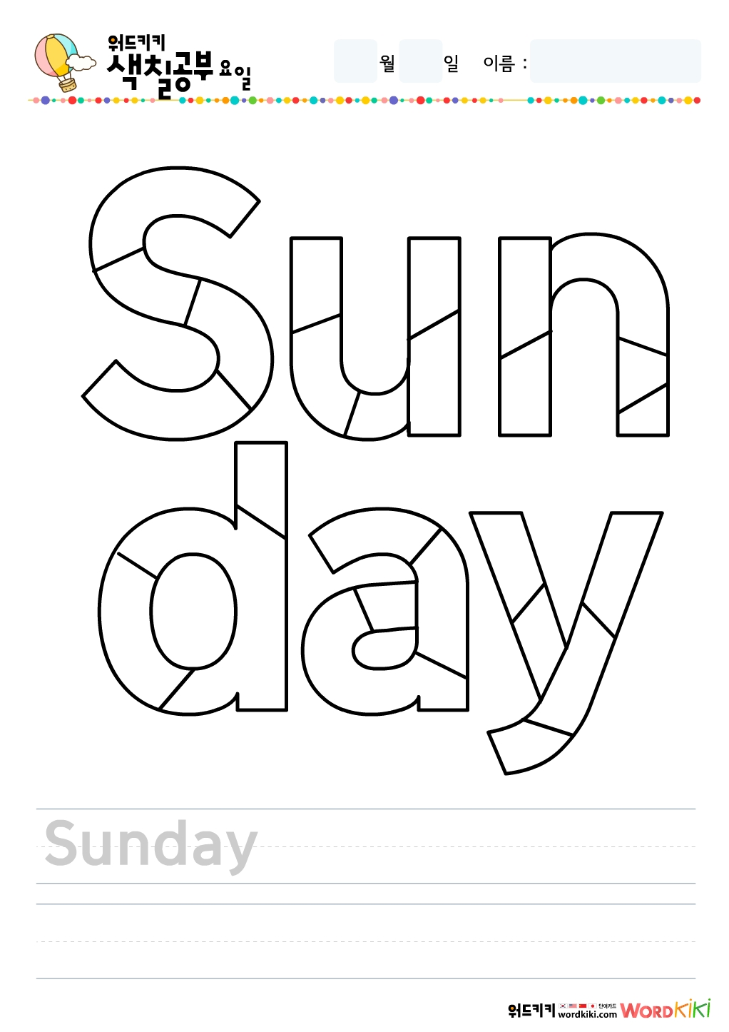 영어 요일 색칠하기 그림입니다.