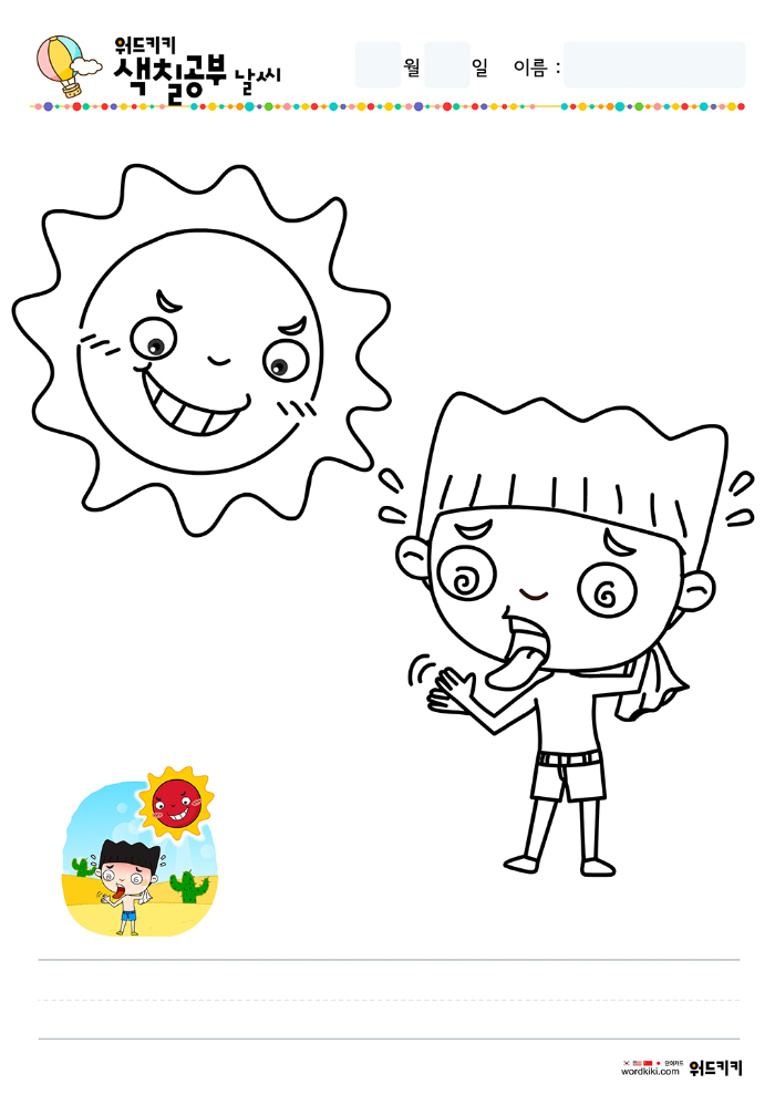 날씨 컬러링북 ,맑다,흐리다,비,눈,바람,춥다,덥다,따뜻하다,시원하다